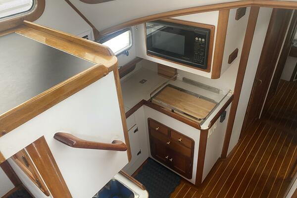 galley is down with lots of storage. This is the popular 2 stateroom, 2 head model with plenty of creature