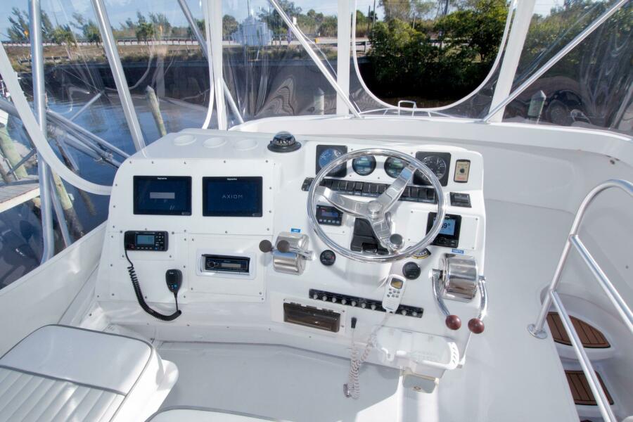 Proven offshore fishing machine, ready for recreational or tournament use. Powered by twin Caterpillar 3126 diesels (420 HP each), with the port engine and transmission recently rebuilt, she offers reliability and strong performance. newer Raymarine electronics, outriggers.