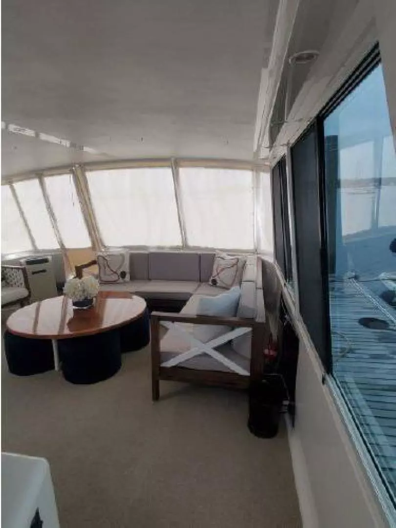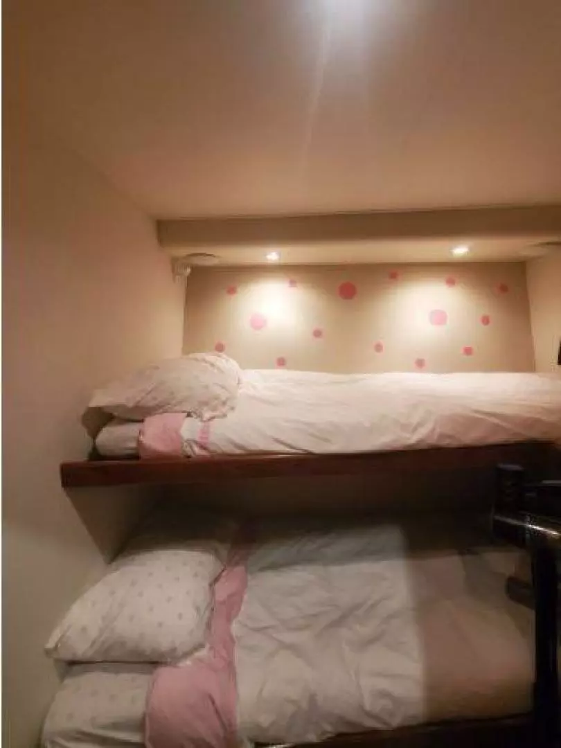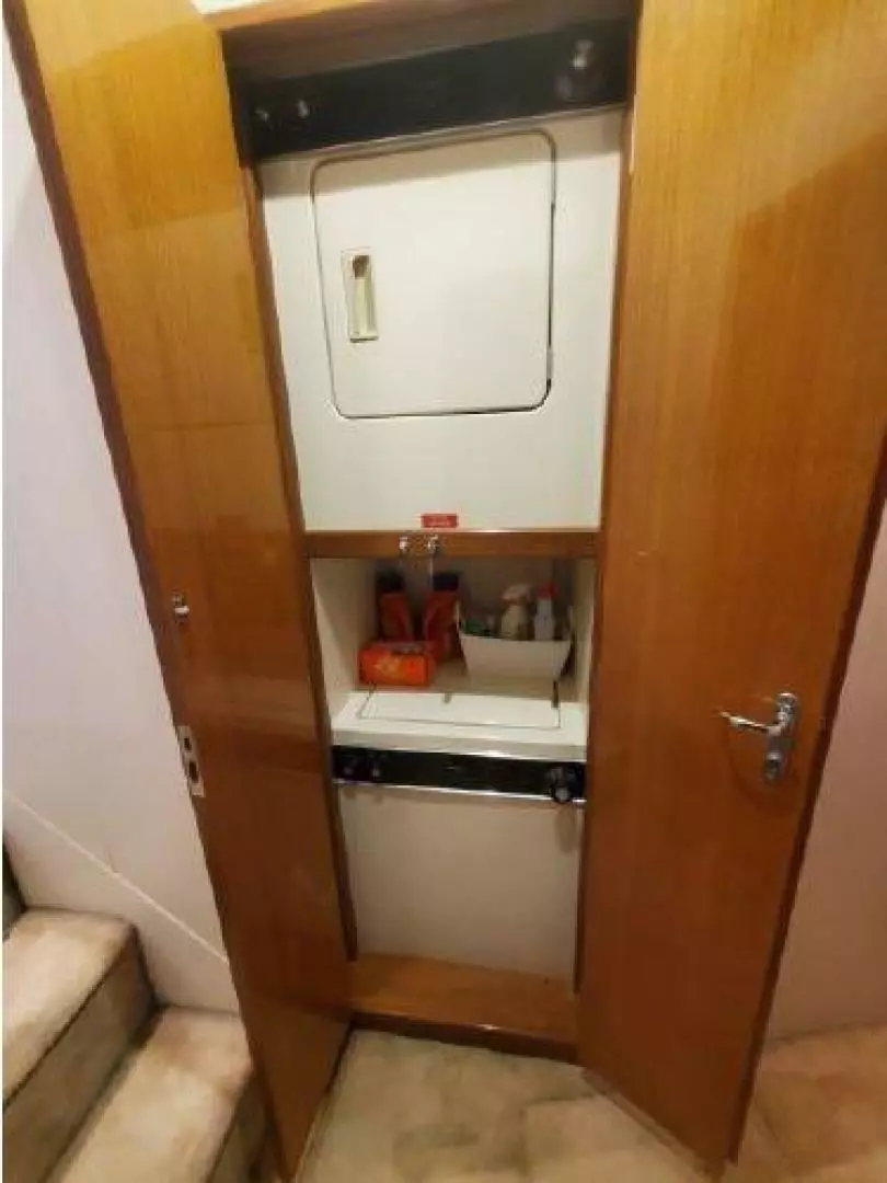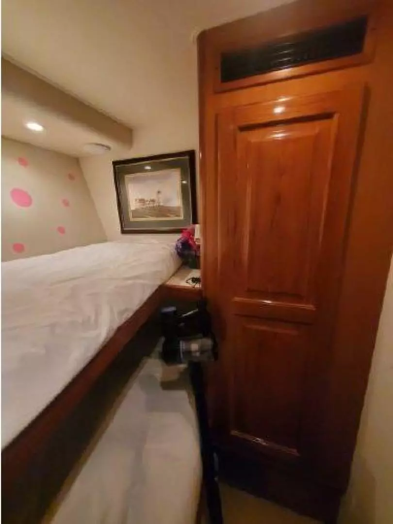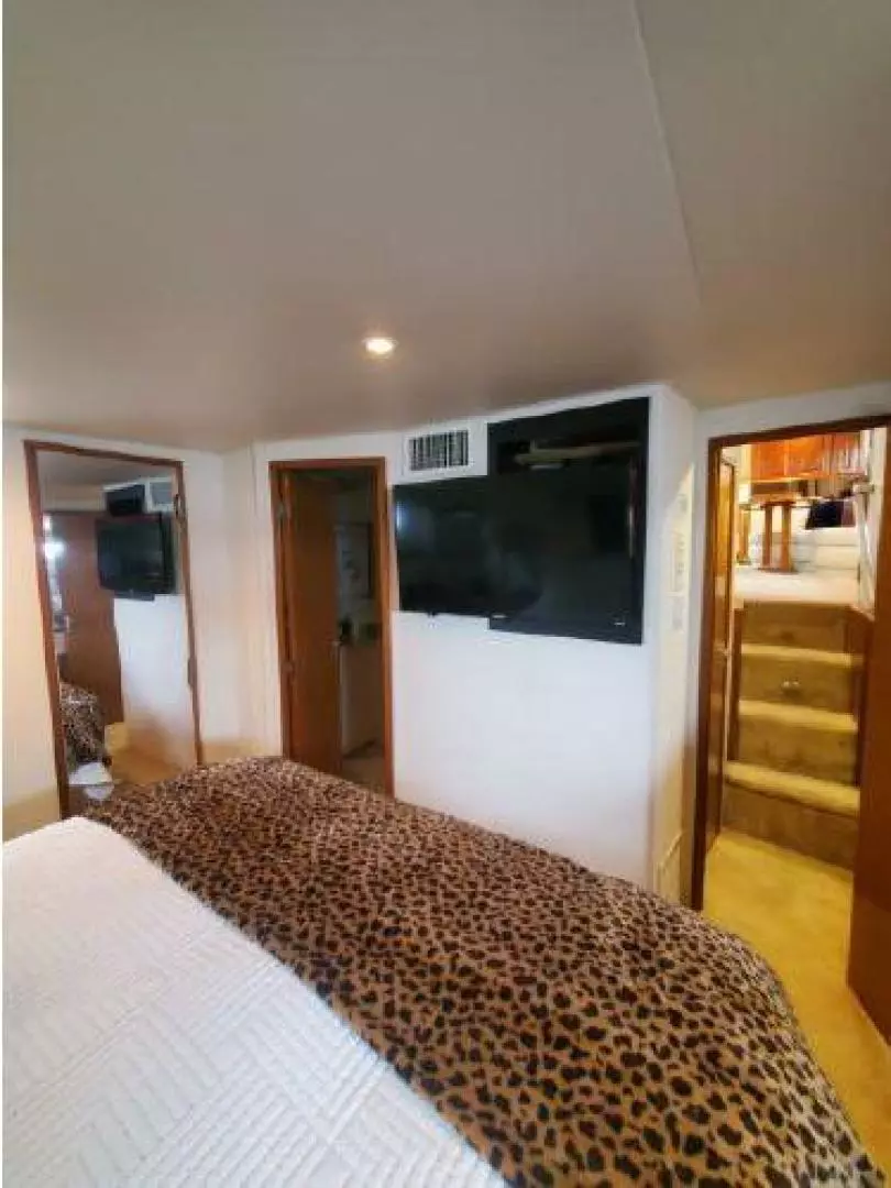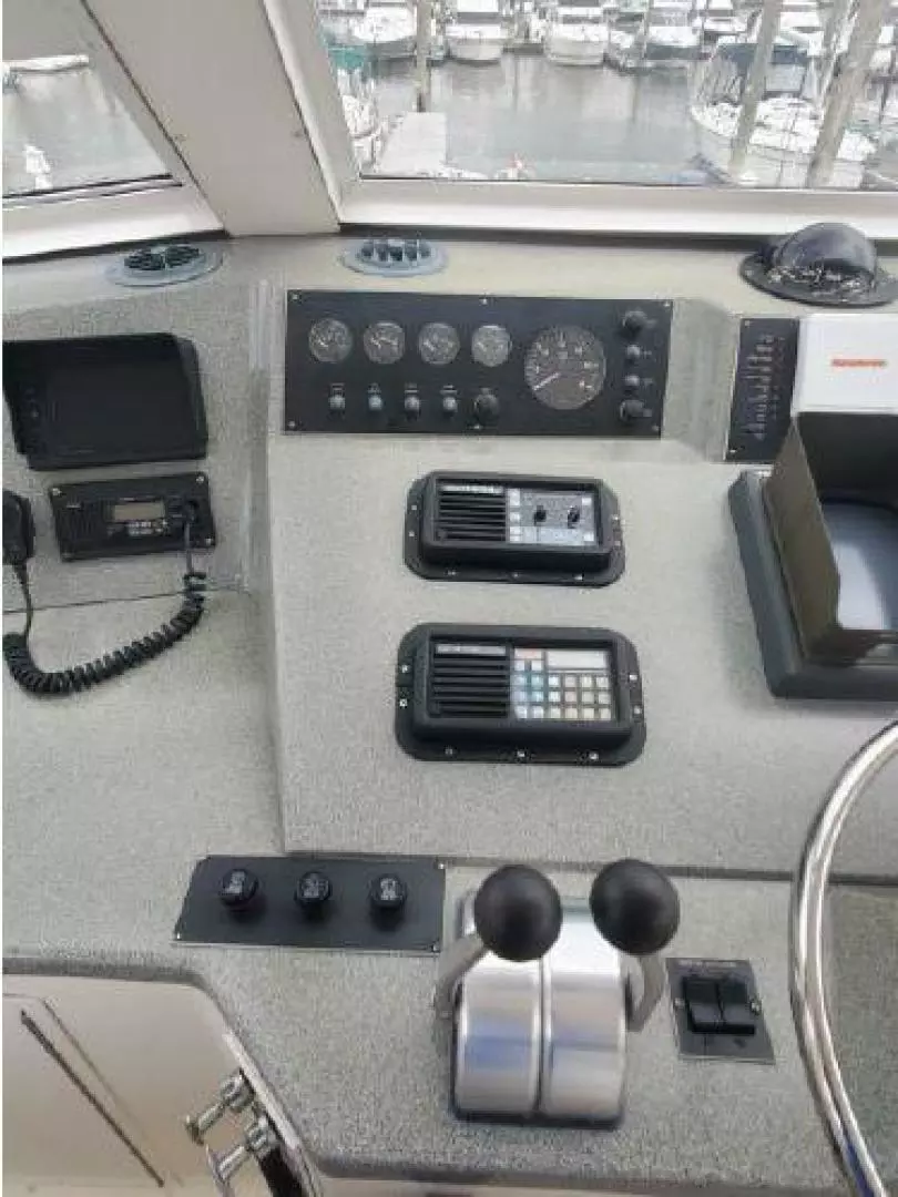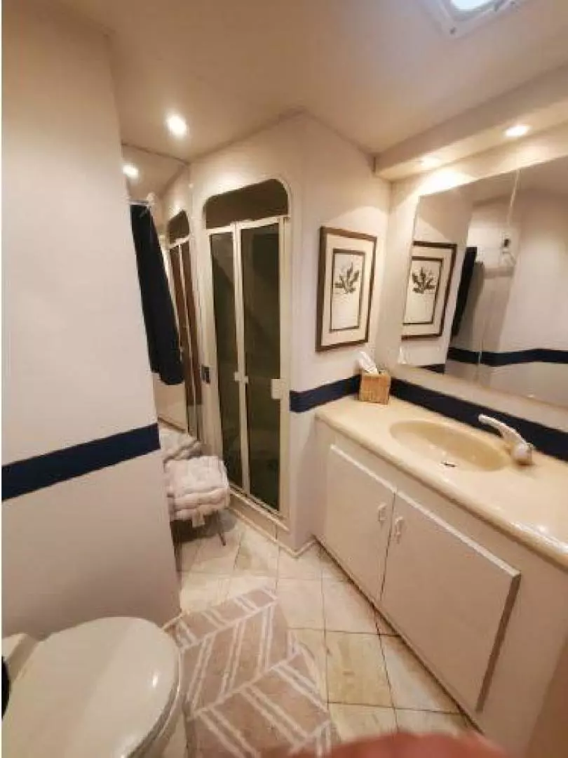 You enter ENUFF into the enclosed aft deck from either the port or starboard sides of the vessel. An extremely comfortable and semi informal area with outstanding views. The Helm station is forward and up a few steps. The aft deck also leads into the spacious and beautiful Main Saloon with galley up for entertaining, Moving forward, down a few steps you have a twin up and down berth cabin to starboard. Next to starboard is the day head with shower with separate access from the hallway or the twin cabin. To port is access to the stacked washer and dryer cabinet. The spacious and tasteful VIP stateroom is in the bow cabin with a private en-suite head sure to impress the most discriminating guest. Moving aft from the Main Saloon and down a few steps you will find the full beam Master Cabin with full en-suite head. This three stateroom three head layout allows for complete privacy. Each cabin is individually climate controlled. The vessel has abundant storage and entertainment systems throughout. There are tasteful touches everywhere.