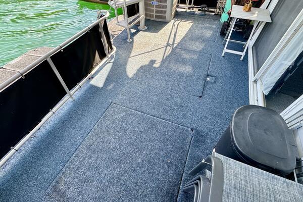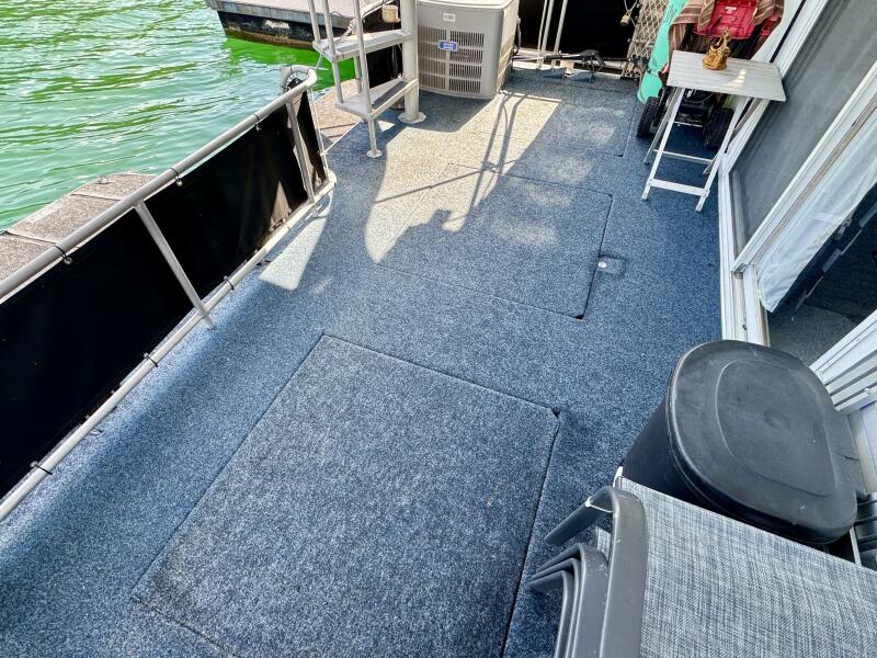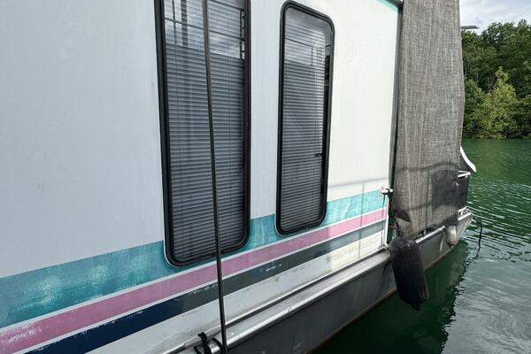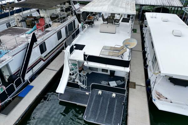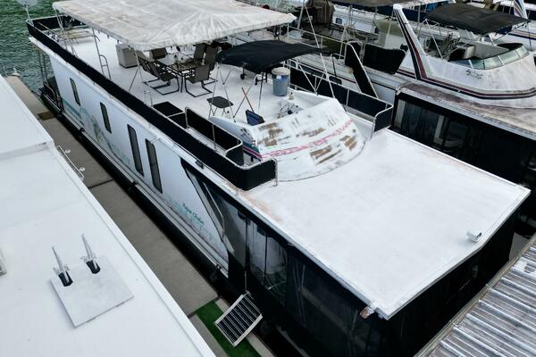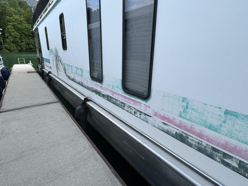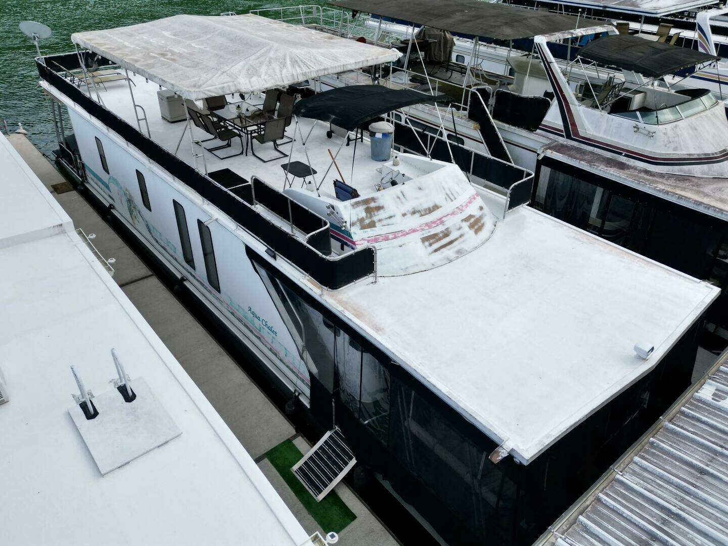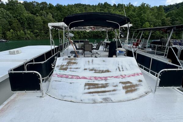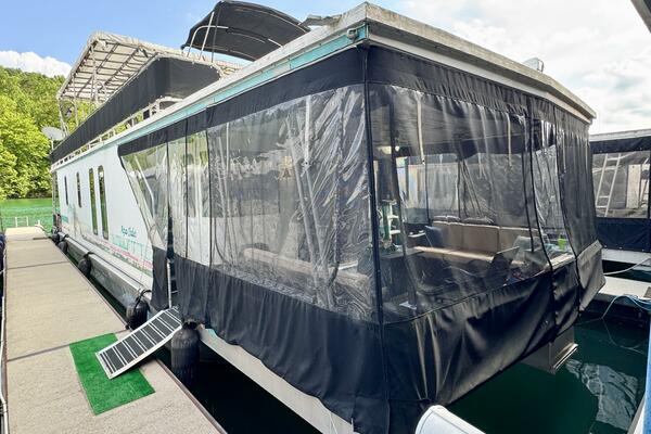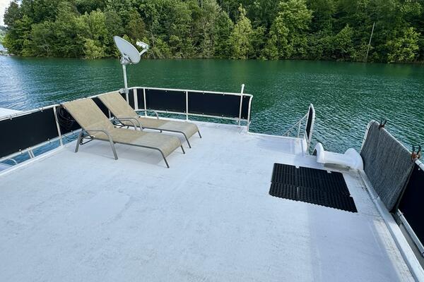 This 2nd Owner Aqua Chalet 16 x 68 Widebody Aluminum Hull Houseboat For Sale on Norris Lake Tennessee is equipped with twin 4.3L V6 Engines & a 12.5KW generator and features 3 bedrooms/2 baths, Central Heat/Air Conditioning, a Dual Helm w/Flybridge, Front Canvas Enclosure, Transferable Slip & more!