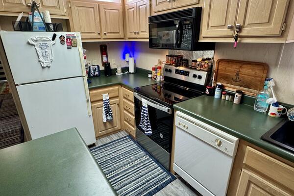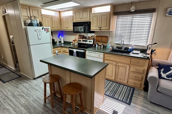 GE Dishwasher, Sink, Coffee Maker, Toaster, Kitchen Island & Wet Bar, Char-Broil Gas Grill w/Side Burner,