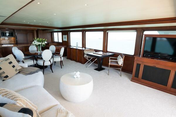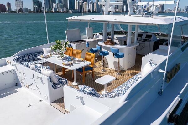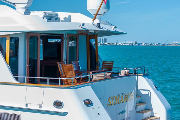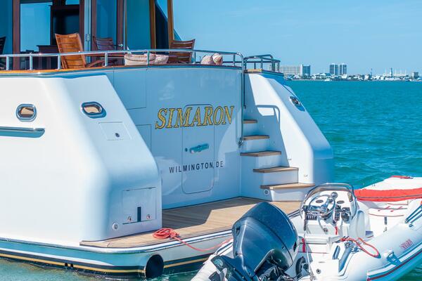 Simply put, *Simaron* is stunning from every angle. She offers three expansive decks of luxurious comfort and entertainment, complemented by a variety of inviting outdoor living spaces for relaxation and enjoyment. Whether inside or out, *Simaron* provides an unparalleled yachting experience. "Simaron is more than just a boat; it's the best decision I ever made." — Owner