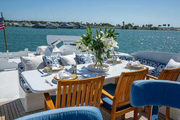 - Full exterior covers for fordeck cushions, aftdeck seating and entire flybridge