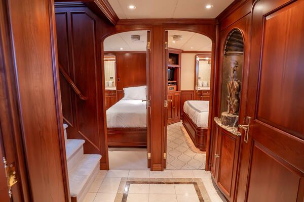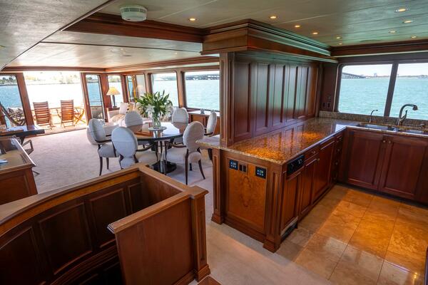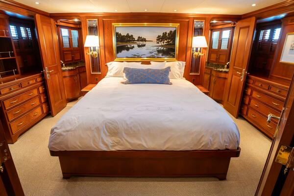 The result is a yacht that stands head and shoulders above current models, offering unmatched luxury, performance, and value. The interior design brilliance of Douglas Richey, combined with the naval architecture and exterior styling expertise of Don O'Keeffe, and the exceptional craftsmanship and engineering precision of the Burger shipyard, culminated in the creation of this breathtaking Flush-Deck Motor Yacht. *Simaron* seamlessly blends the timeless elegance of classic Burger yachts with the modern sophistication of higher freeboard designs.