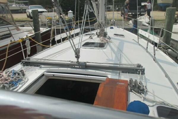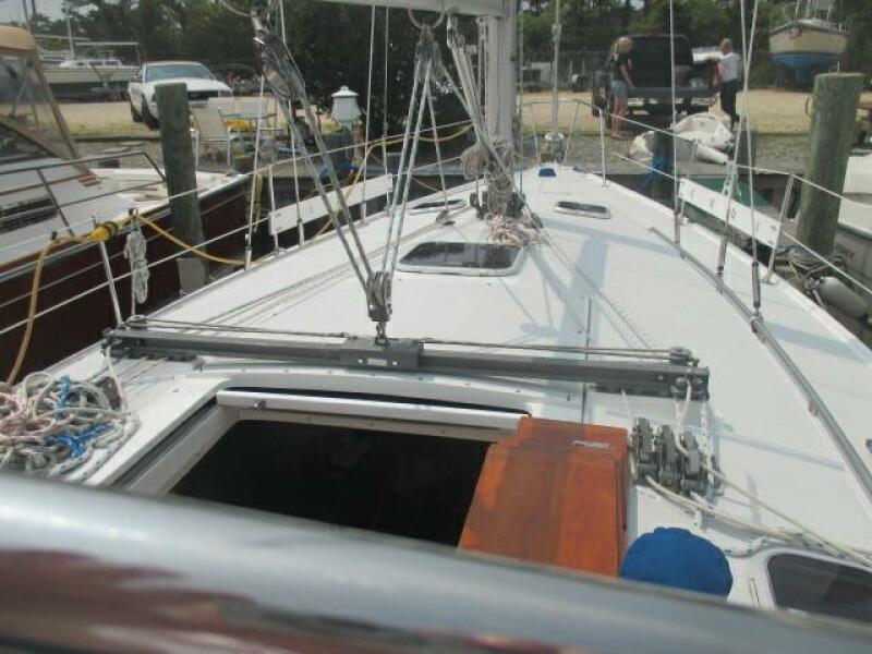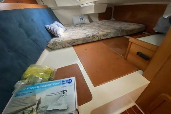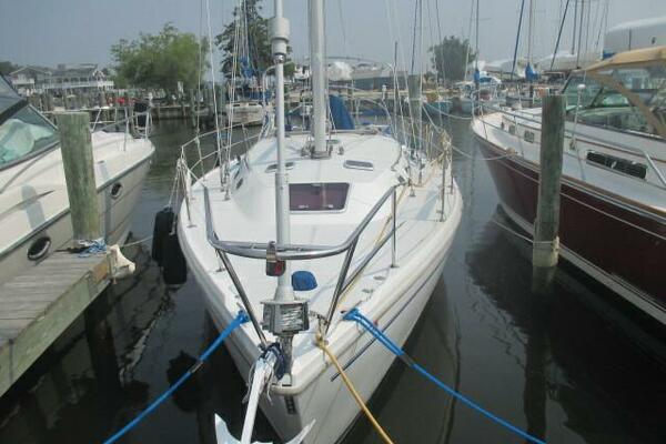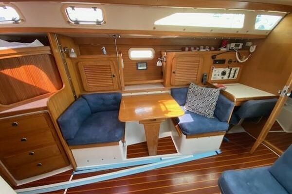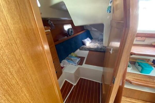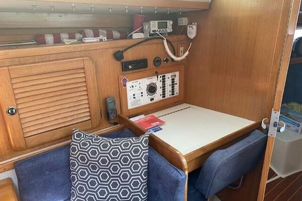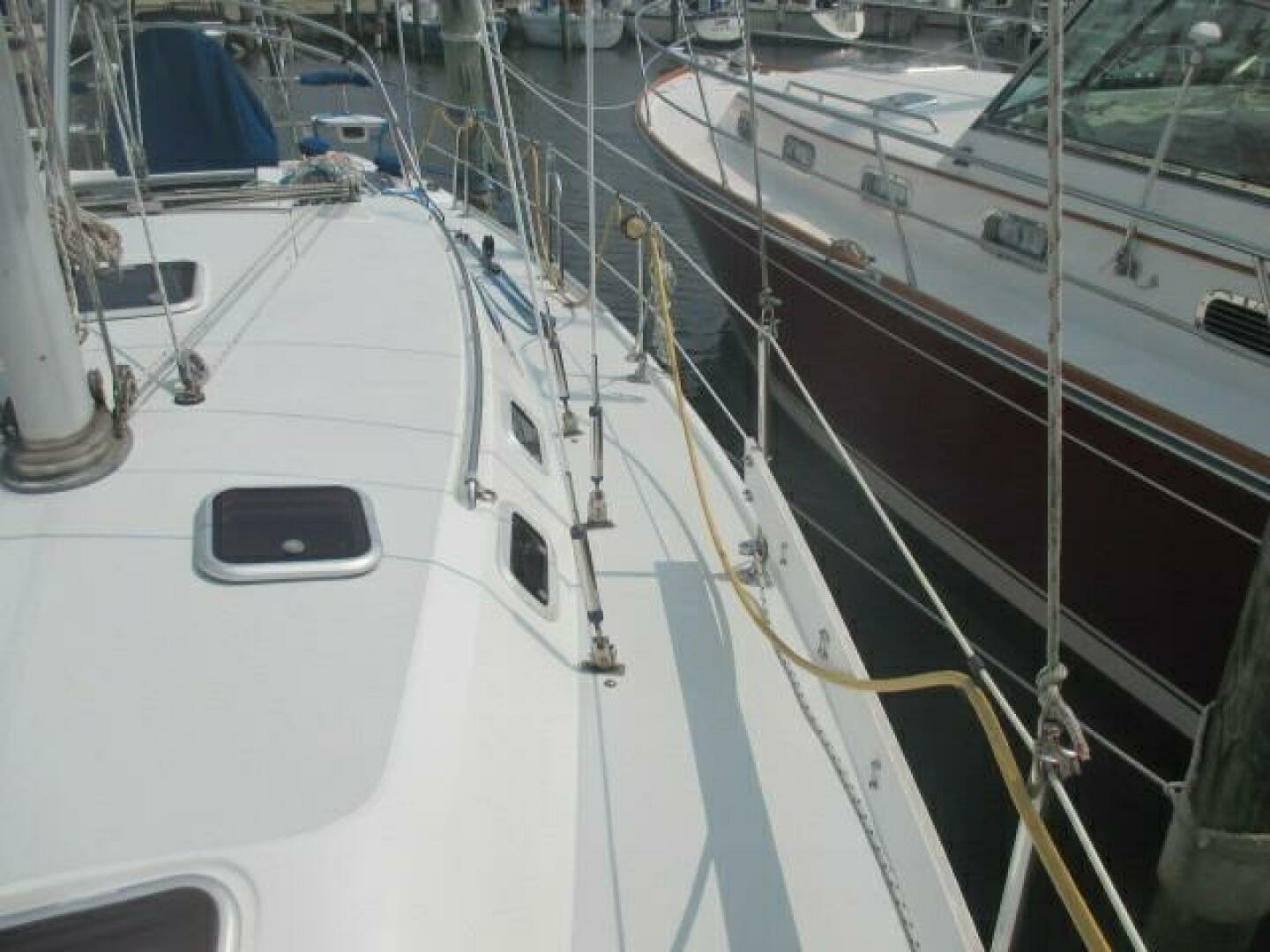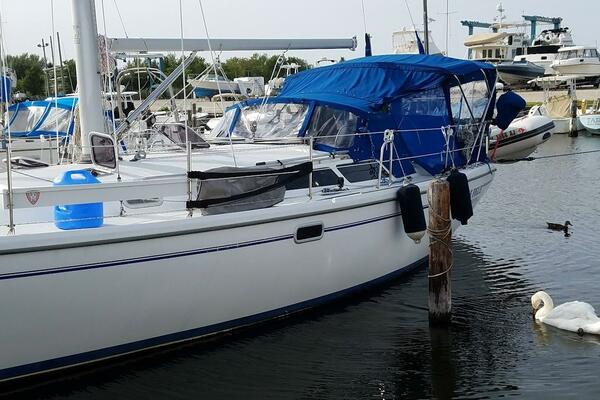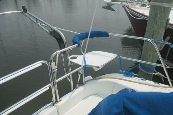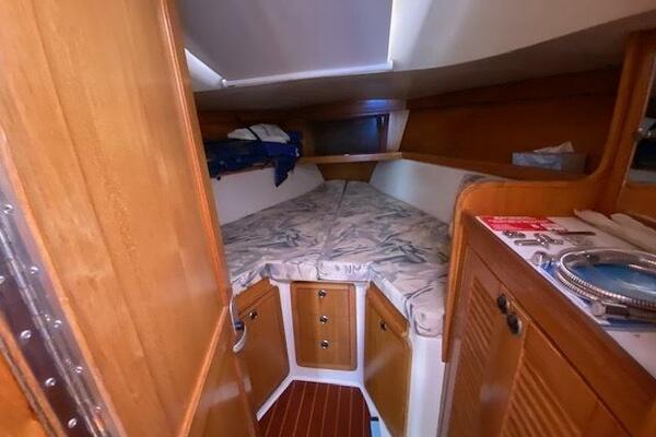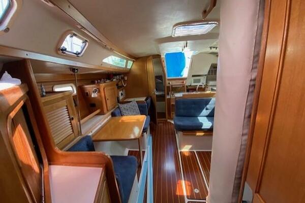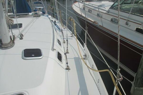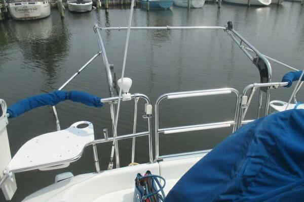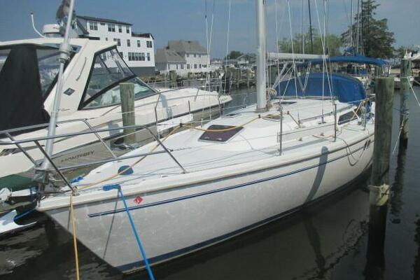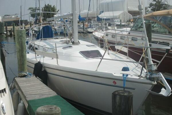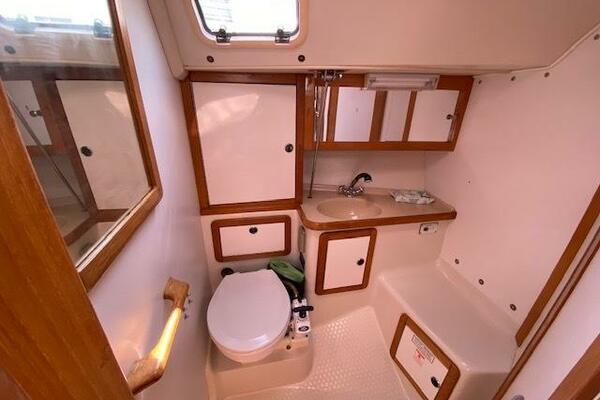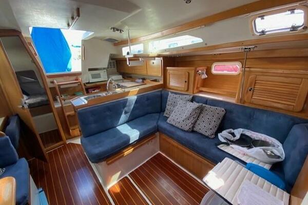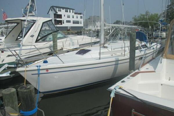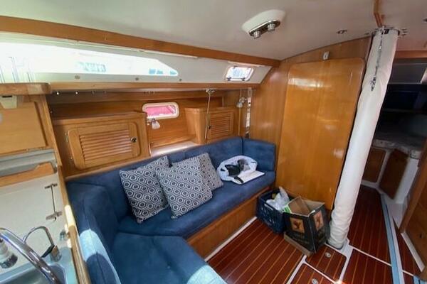 The Catalina 36 MKII is one of Catalina's most popular designs and is equally at home on a club course or coastal cruising. She is easy to sail by a couple, has a big comfortable cockpit, a spacious interior with two private cabins. A dodger with bimini and full enclosure will keep you protected from the elements and provide nice shade from the sun. A walk-through transom with swim platform and boarding ladder means you can easily board from the stern or at the port and starboard gates. The wide weather decks with handrails and double lifelines make passage to the bow safe and easy for handling lines. Below, you will find a spacious salon with convertible dinette to port, a convertible settee with table to starboard, and private staterooms fore and aft. The U-shaped galley has working refrigeration, stove, double sink, and ample counter space along with plenty of storage opportunities. The enclosed head with ensuite access to the forward stateroom has room to move around and a shower seat.