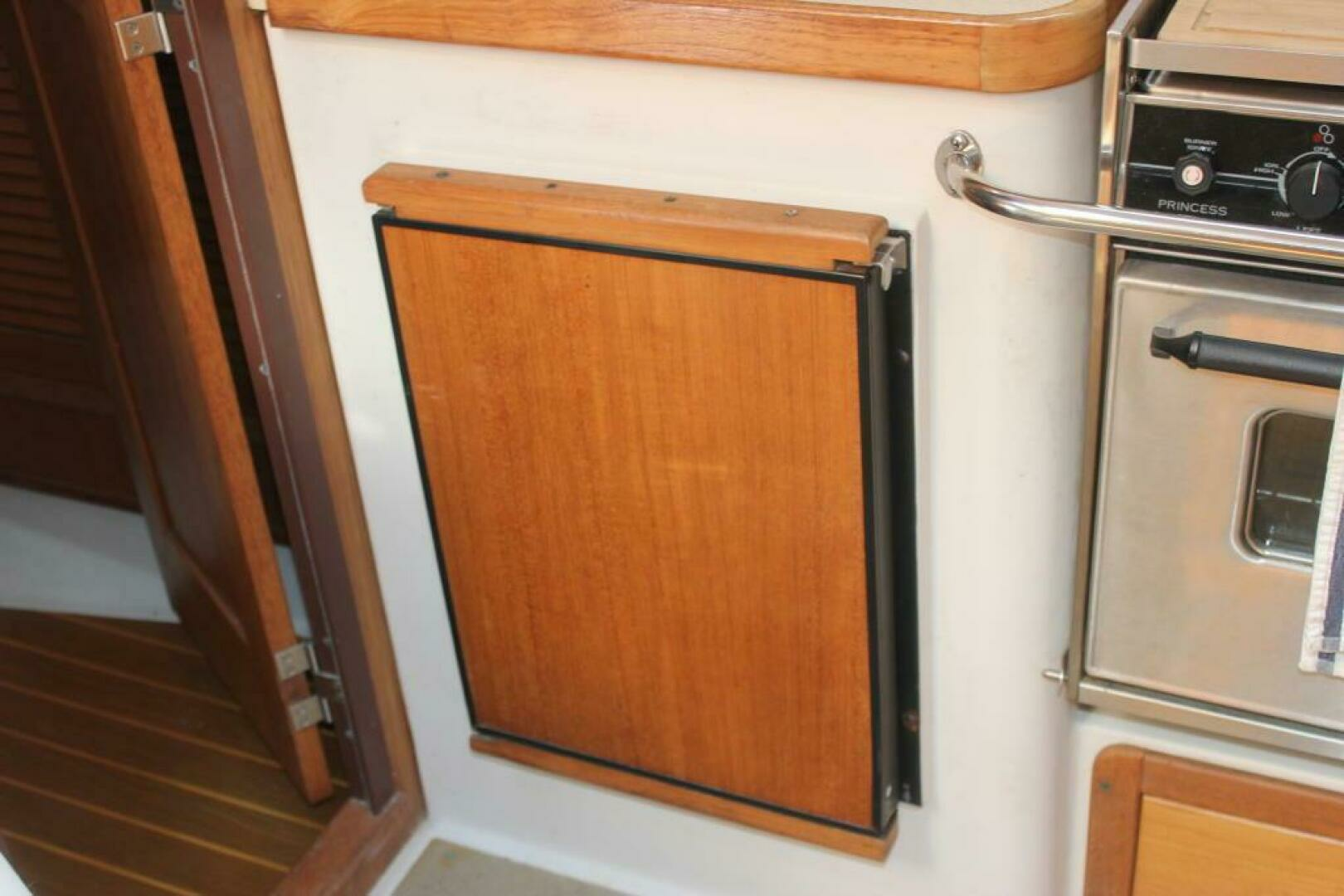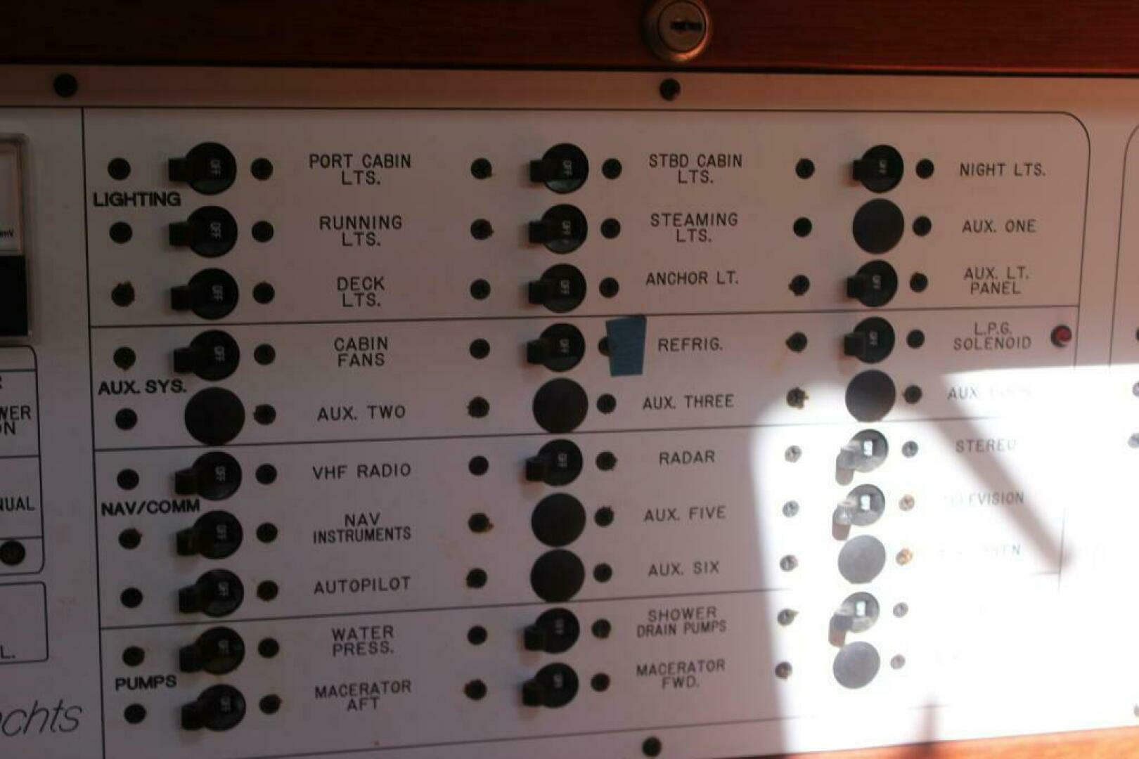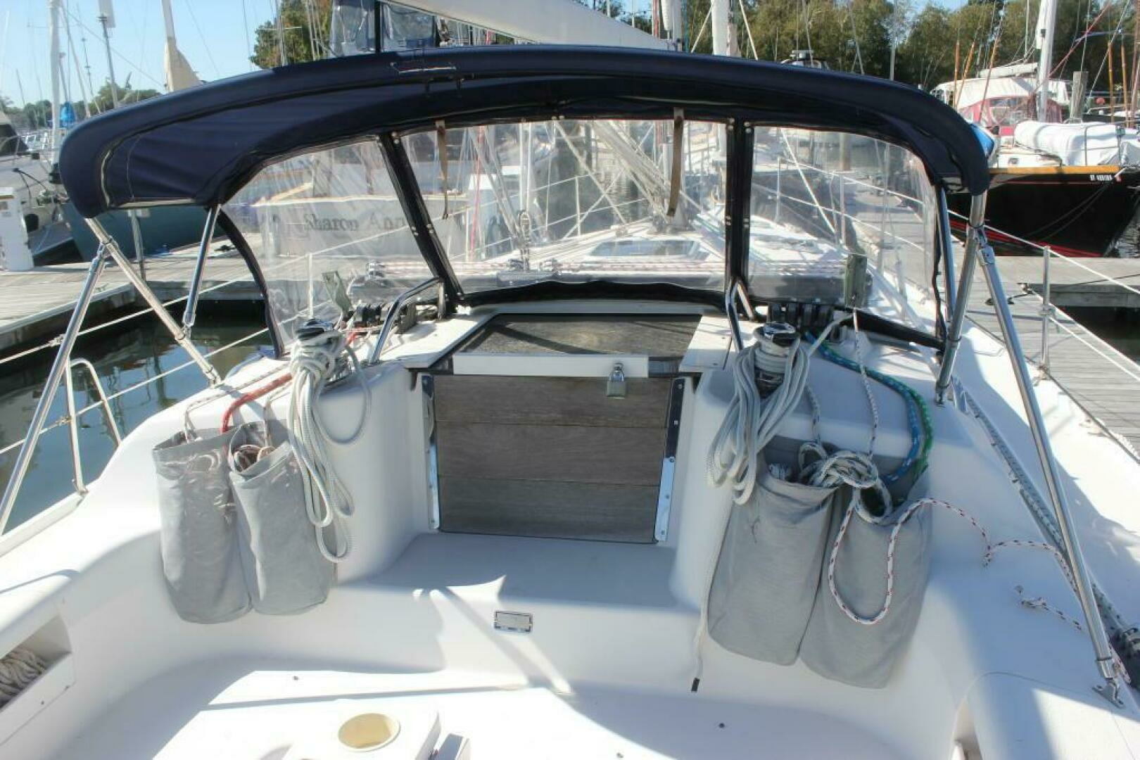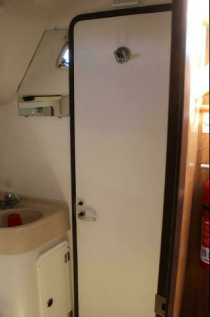 Sail La Vie interior features varnished teak bulkheads, cabinets and joinery. The aft owner’s cabin has seating and hanging lockers and private access to the head and the guest cabin is a V-Berth forward with a sink. Her salon has a U-shaped settee/berth to port with a dining table, settee to starboard, Nav Station midship to starboard and galley aft to port. The galley has refrigeration, 3-burner Princess propane stovetop/oven, SS sink and good storage. The head is aft of the Nav Station to starboard. She has an In-mast mail, roller furler on the jib/genoa. Her sail inventory is the in-mast main in good condition, jib in good condition and a 125% genoa in good condition. Her wing keel allows you to get into some areas the full keel can’t access. Her auxiliary power is a 42-HP Westerbeke diesel. She is in her slip in Greenport aand ready to go. Call for an appointment to see her.