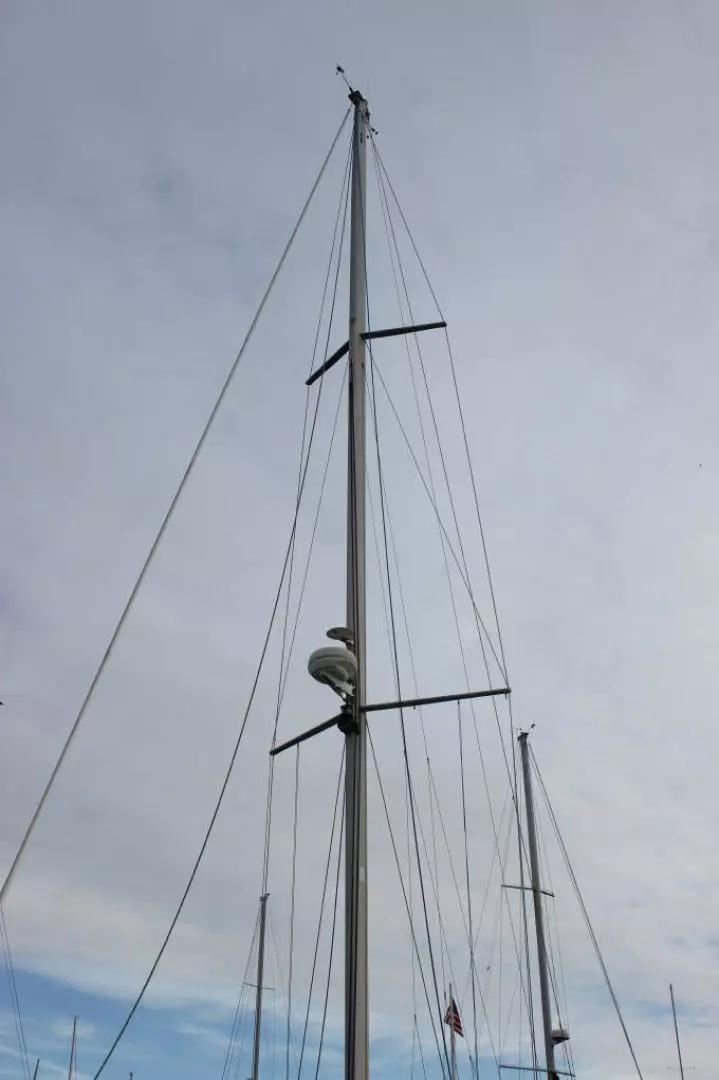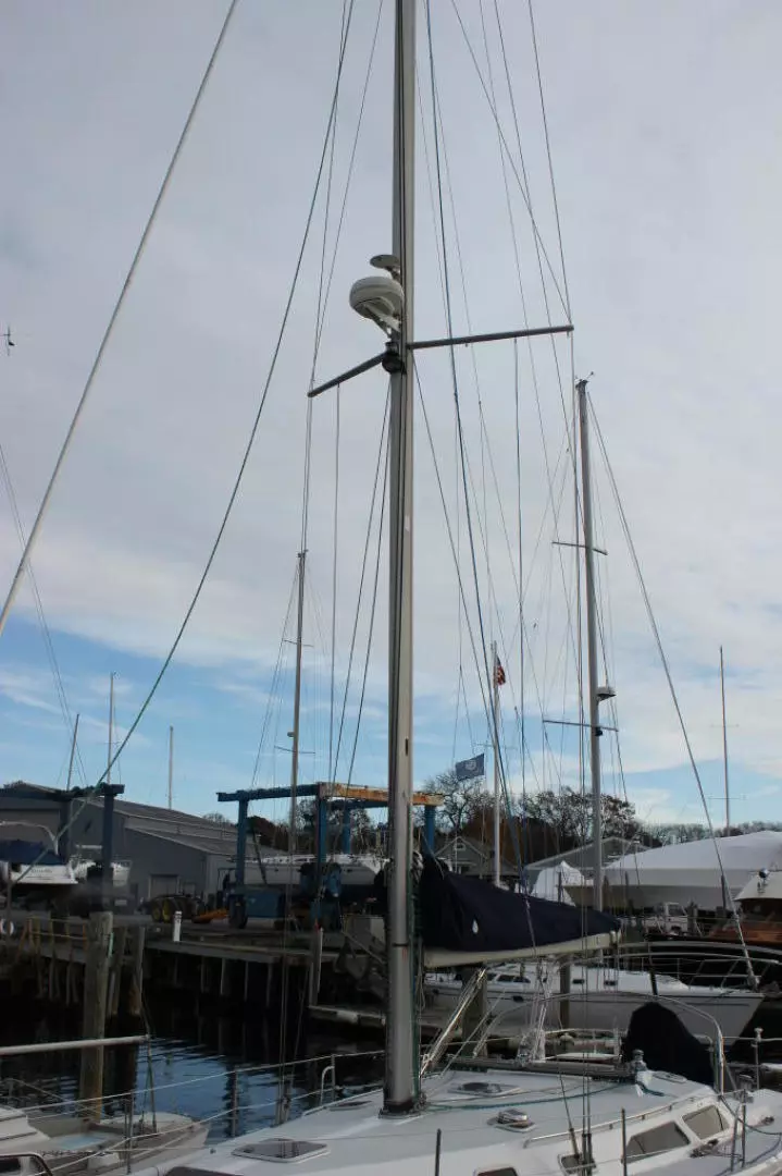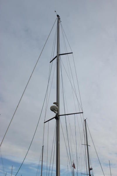 Masthead rig; Charleston Spars anodized aluminum mast with slightly-swept double spreaders stepped on keel