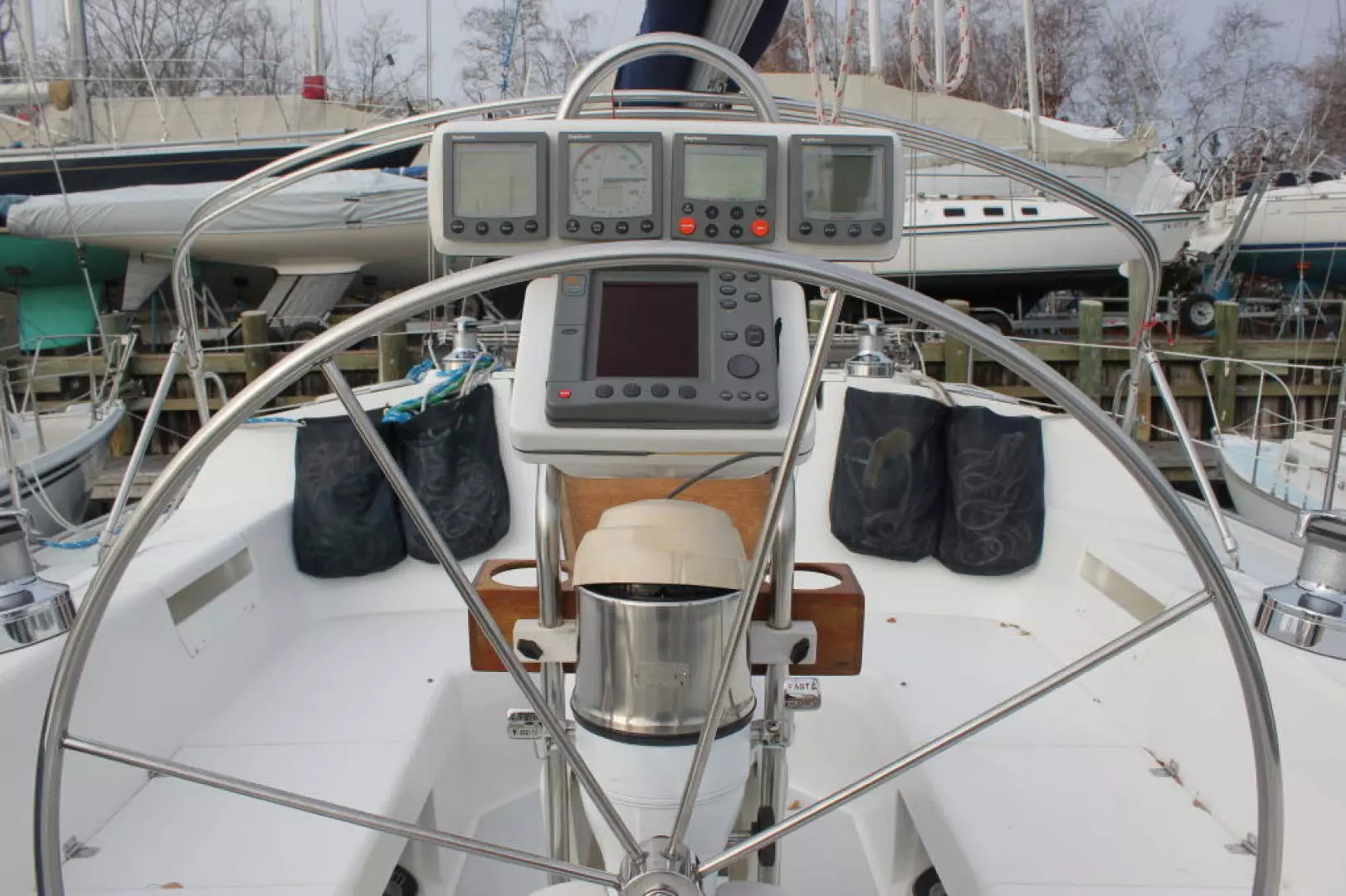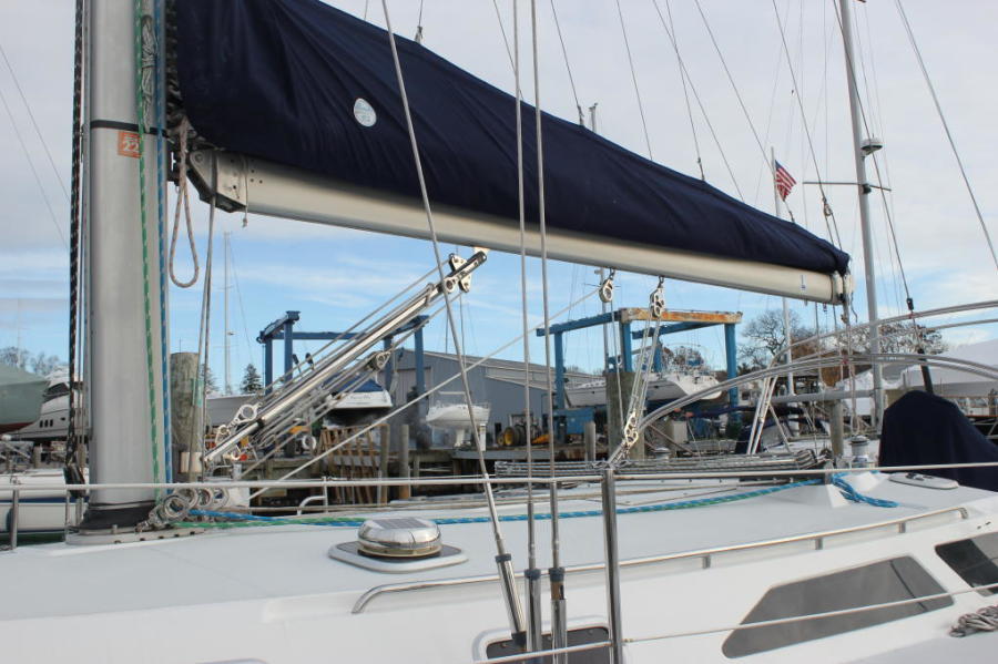 Wind Catcher is the 3-stateroom arrangement with a spacious salon, full galley, NavStation and two heads. Her hull is high volume and easily driven with a fine entry, firm midship section and smooth run aft terminating in a modified reverse transom with a spacious and functional boarding platform. Her sail inventory consists of a 135 Genos in very good condition, full battened main in very good condition and a rarely used spinnaker. Her auxiliary power is a 50-HP Yanmar diesel. She has a wing keel with a draft under 5-feet for access to the skinny waters. Check out the Full Specs and call for an appointment to see her. She is located in Greenport, NY.