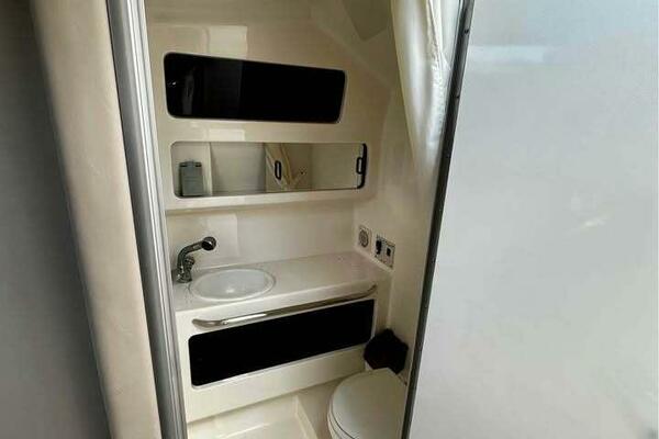 Dorisea is powered by twin Mercury MerCruiser 4.3L V6 engines (190 HP each) coupled to Bravo sterndrives, and these engines both have less than 200 hours on them!! There is a dedicated 12V starter battery for each engine, one 12V house battery, and an onboard charger. At the helm station, a Lowrance combo unit serves as your fish finder, GPS and depth display. The Signature 29 features a modified-V hull design, providing a steady ride in rougher conditions and the stability needed for comfort on anchor or at the dock. Draft with the sterndrives lowered is only 33 inches, which is ideal for cruising on the Chesapeake. Call today to schedule your showing of this exceptional express cruiser!