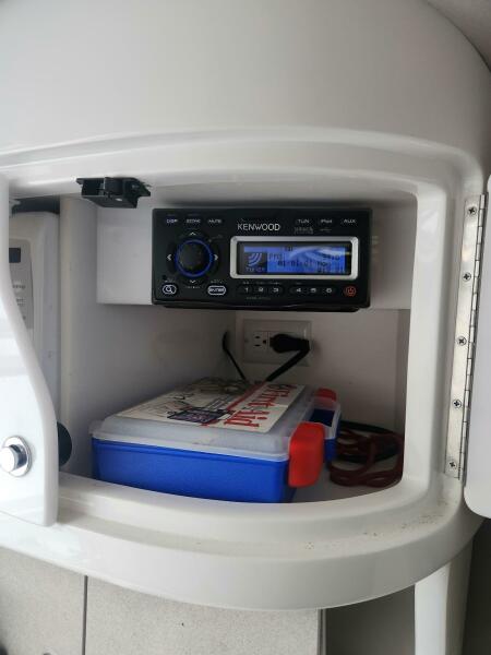 Surround stereo in V-berth cabin and up on deck