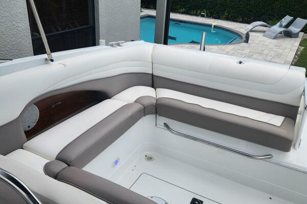 Spacious cockpit with wraparound seating and wet bar