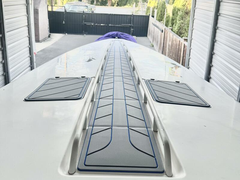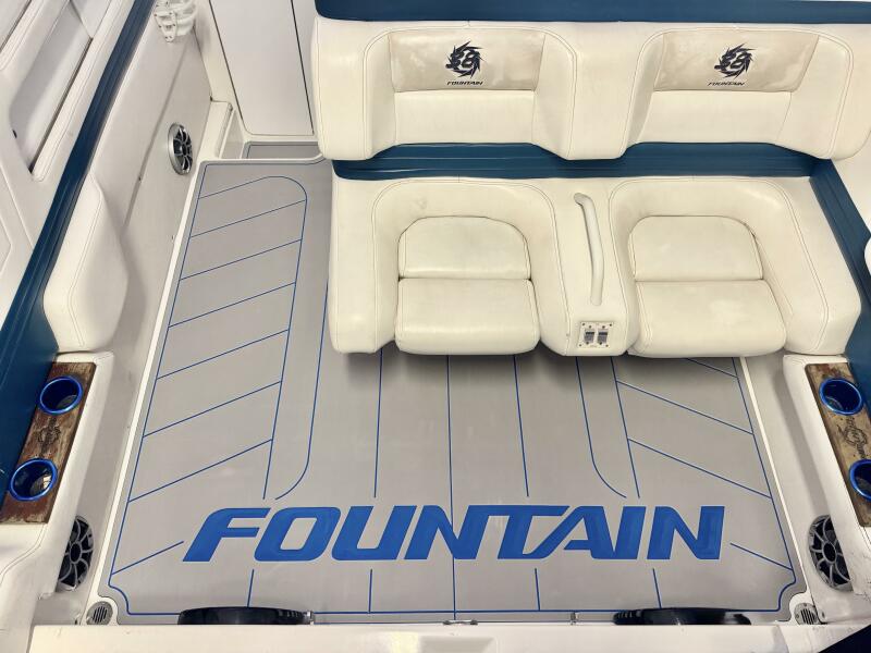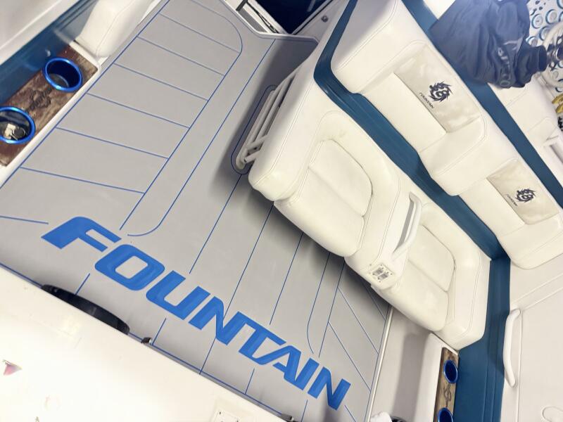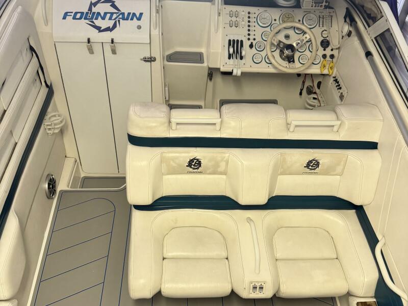 Rare find! This 1999 Fountain Sport Cruiser boasts high horsepower with twin Mercruiser 500EFI engines and Bravo XR drives, each with only 350 hours. It's a true head-turner, featuring K-planes, outdrive, hydraulic steering, silent choice, 4 electric bolsters, and a walk-through windshield. NEW Decking/flooring by True Deck Marine EVS
