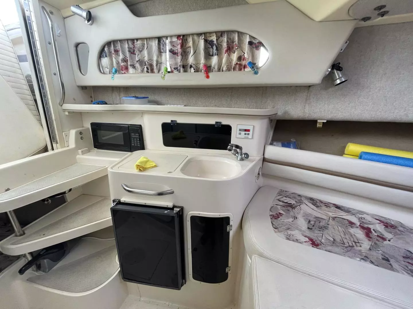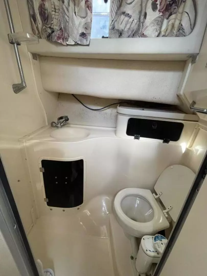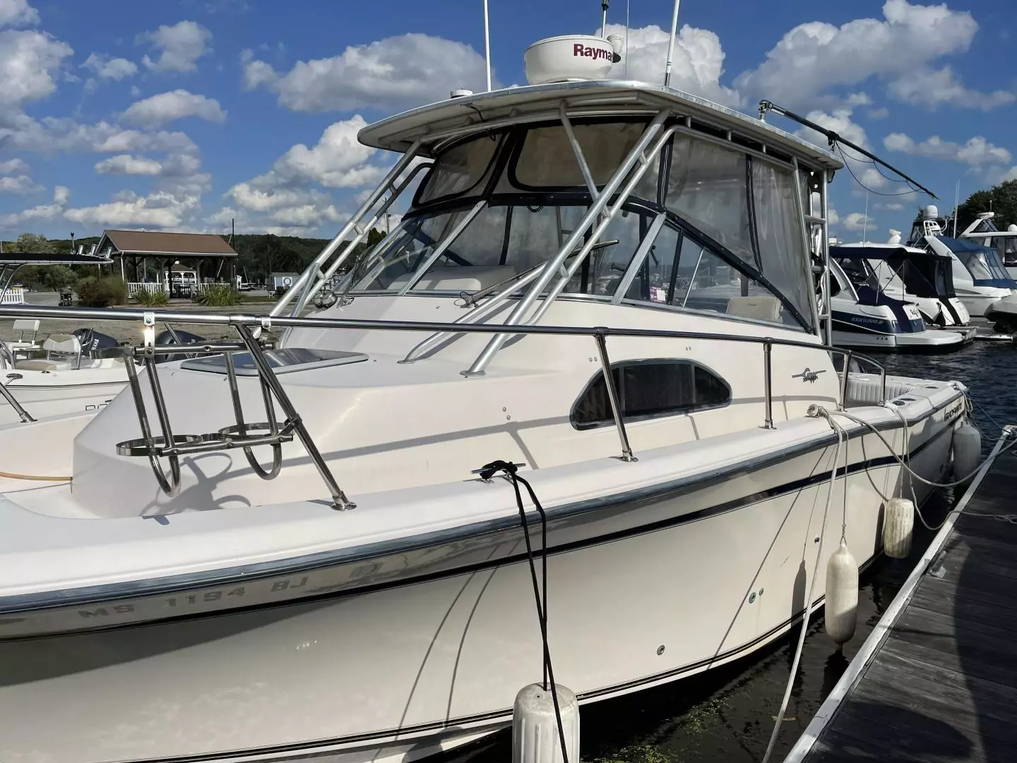 "MAPLE QUEEN" has been kept in fresh water and is good shape for her age. Powered by twin Yamaha 2-stroke OX66 250hp outboards with approx. 750hrs. Some features are Lewmar Bow Thruster, Kohler Generator, Anchor Windlass, and Marine Air Conditioning. Below deck, the Marlin's well-finished cabin sleeps four and includes a full-service galley with fridge, enclosed head/shower, midcabin double berth, and convertible dinette/V-berth forward.