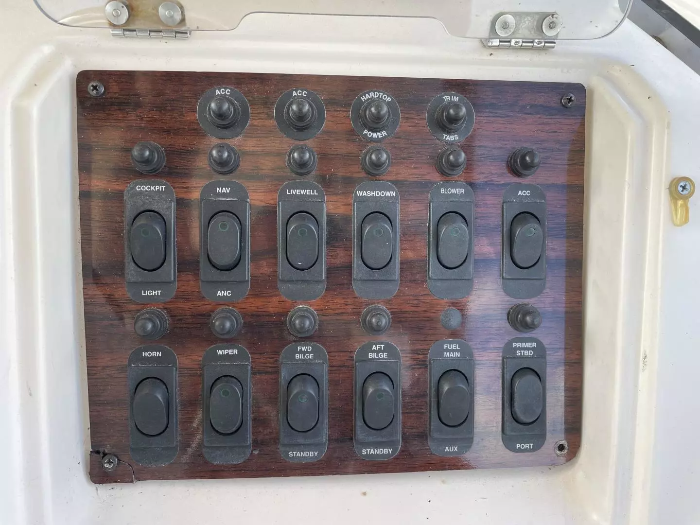 her own against any competitive boat. Standard features include an integrated swim/dive platform, 30-gallon standup livewell, rigging station with tackle drawers, insulated fish box, cockpit rod storage, cockpit toe rails, aft-facing jump seat, transom door, raw-water