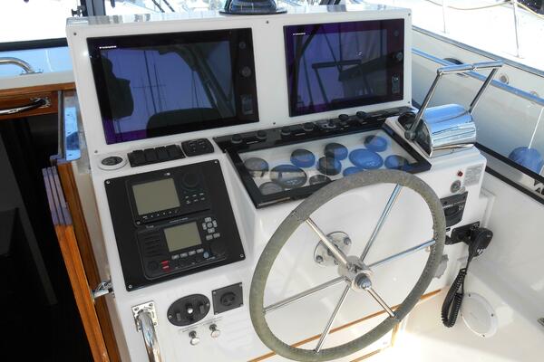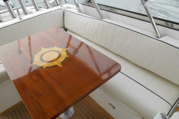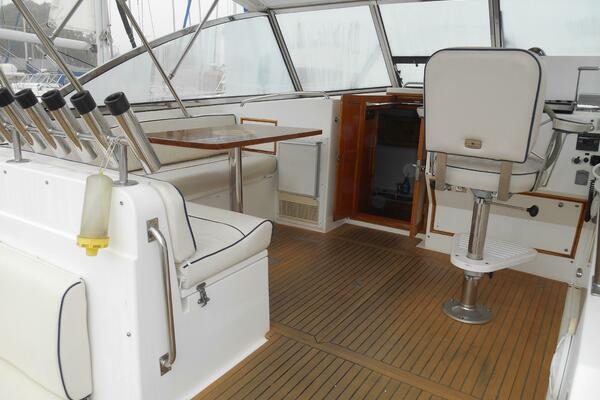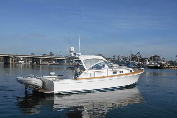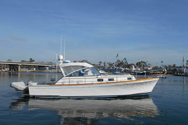 Grand Banks introduced the Eastbay line starting with the 38 EX in 1994 taking Grand Banks in a completely new direction from the traditional trawler line. Upon stepping aboard “Balmy” it becomes very apparent to the traditional build quality Grand Banks is famous for. The large cockpit and expansive helm deck are great for entertaining or relaxing in your favorite cove. Below deck is very traditional of Grand Banks quality with a full-service galley to port and convertible U-shaped dinette to starboard. Forward is the master stateroom with center Island Berth.