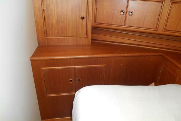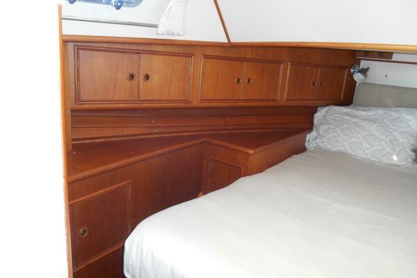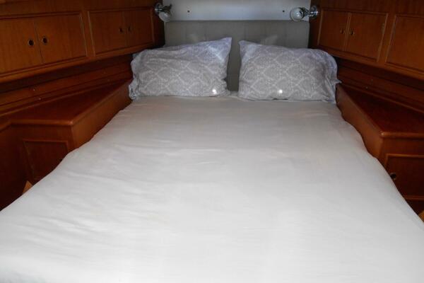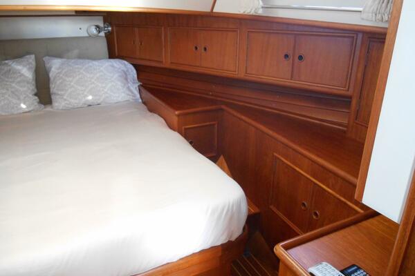 The Master Stateroom is located all the way forward and in Grand Banks tradition is finished in high quality teak cabinetry.