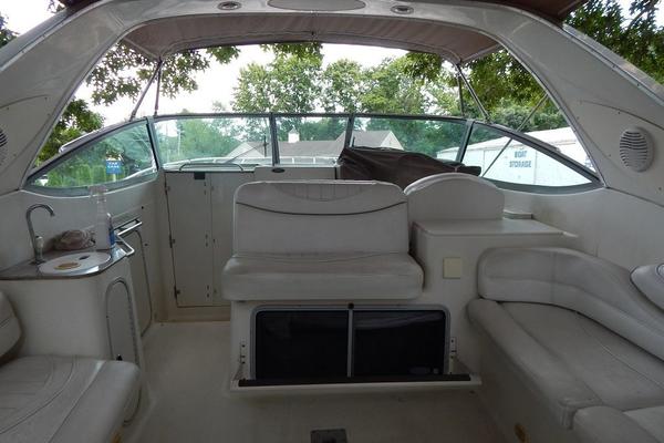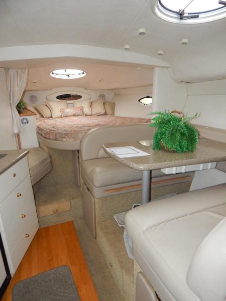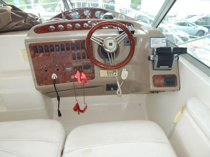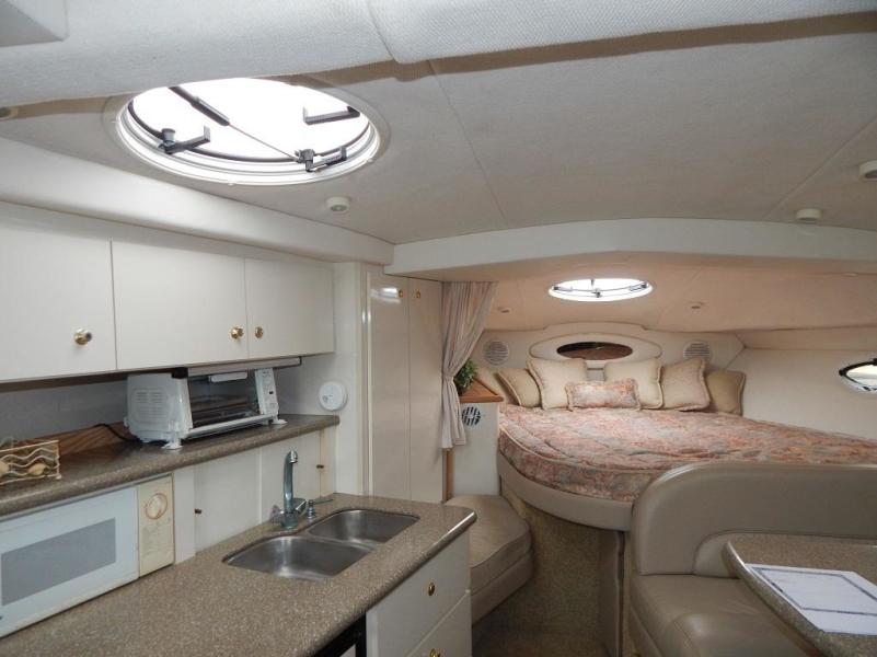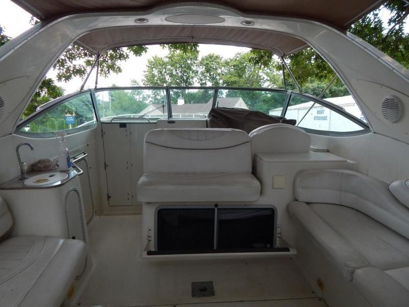 The Maxum 3300 SCR sport cruiser has a layout and amenities of more expensive boats. The mid cabin interior has air conditioning, electric head and low hour 7.4 MPI engines with Bravo III drives. Call to see her today in North Kingstown, RI.