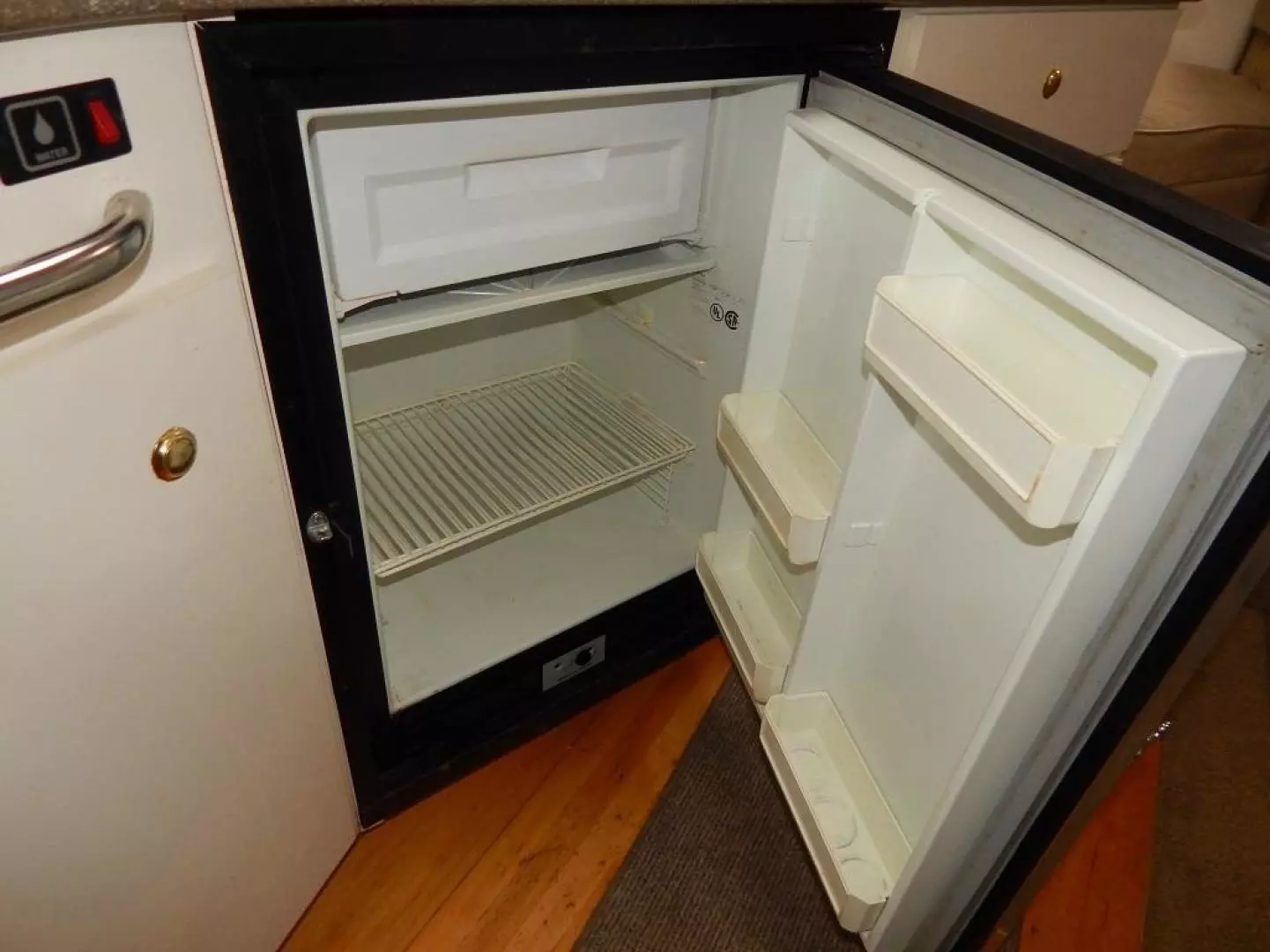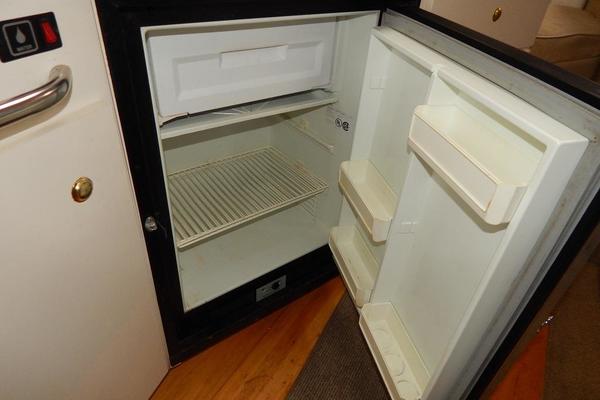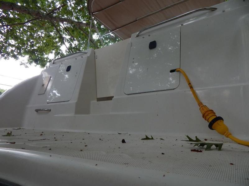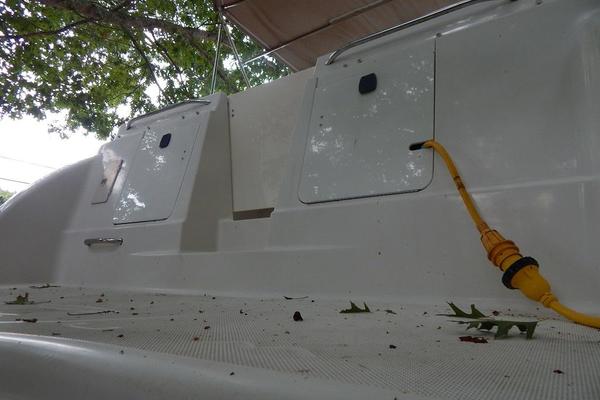 There are 5 opening ports and 3 opening overhead hatches for light and ventilation. There is a large opening window in the aft cabin. There is carpeting on the cabin sole and hardwood in the galley area.