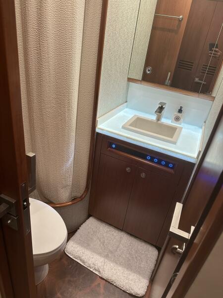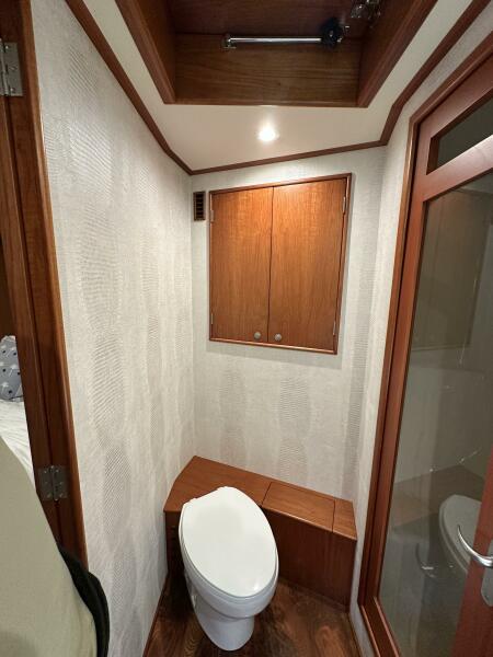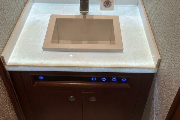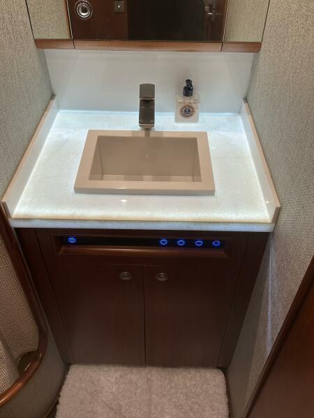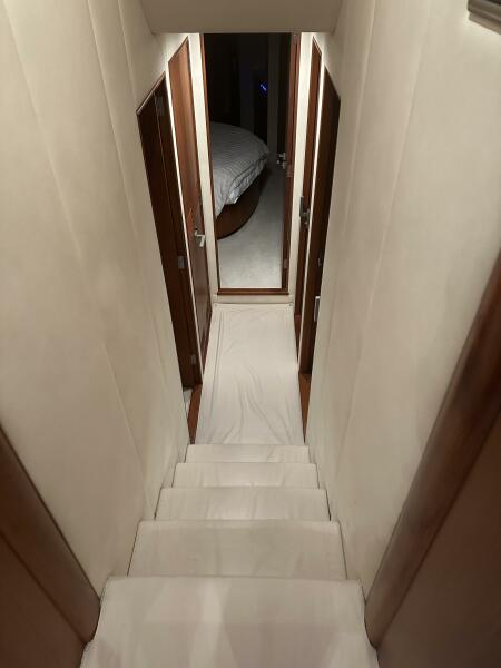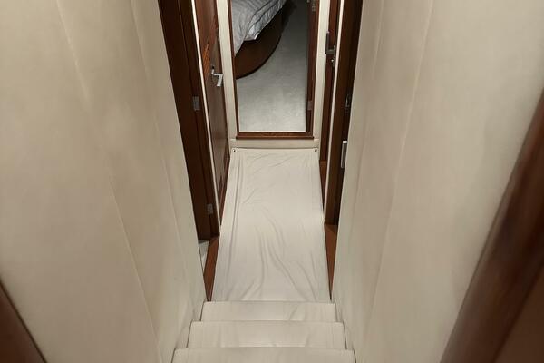 The interior is classic Merritt satin teak throughout, galley counter tops were stripped for the installation of new stone, modern sea rail trim with tighter corners and all new LED lighting were installed as well all new fixtures in the heads and galley. All new headliners and fabrics. with many modern upgrades including all new stone surfaces in staterooms and heads with modern angular corners throughout. New electronics suite, all exterior varnish was stripped and refinished in 2022 as well as a full paint job at Merritt’s in 2022.