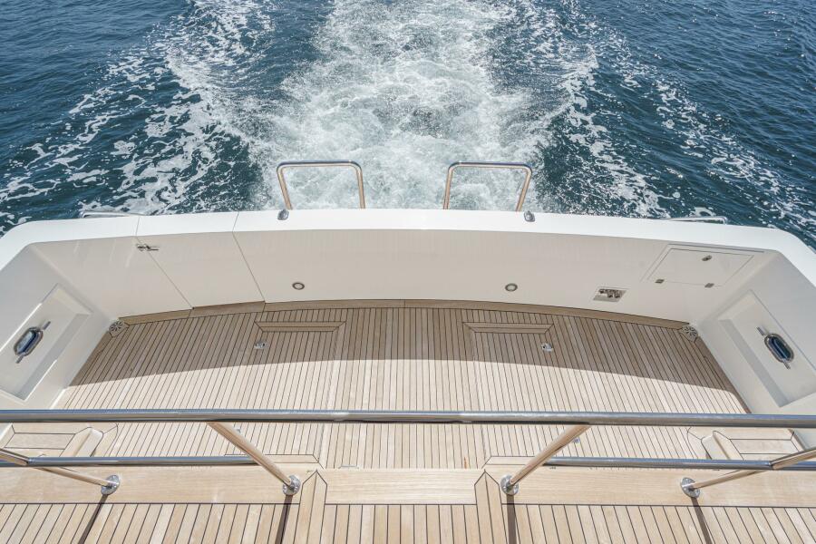 - Custom teak decks on aft deck, cockpit, & swim platform