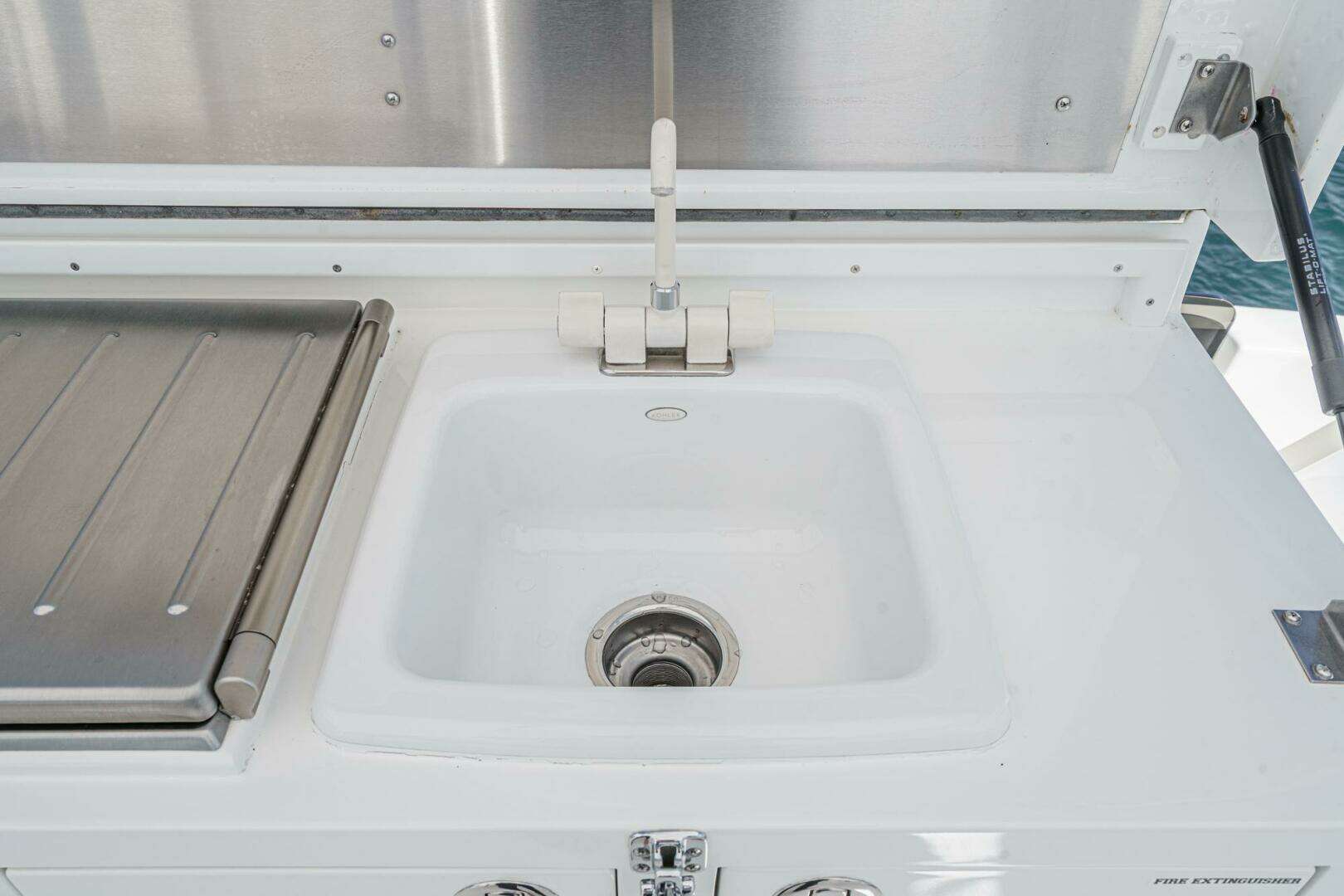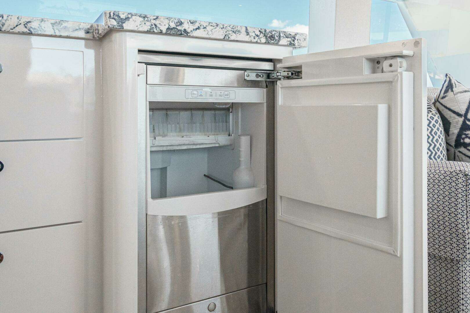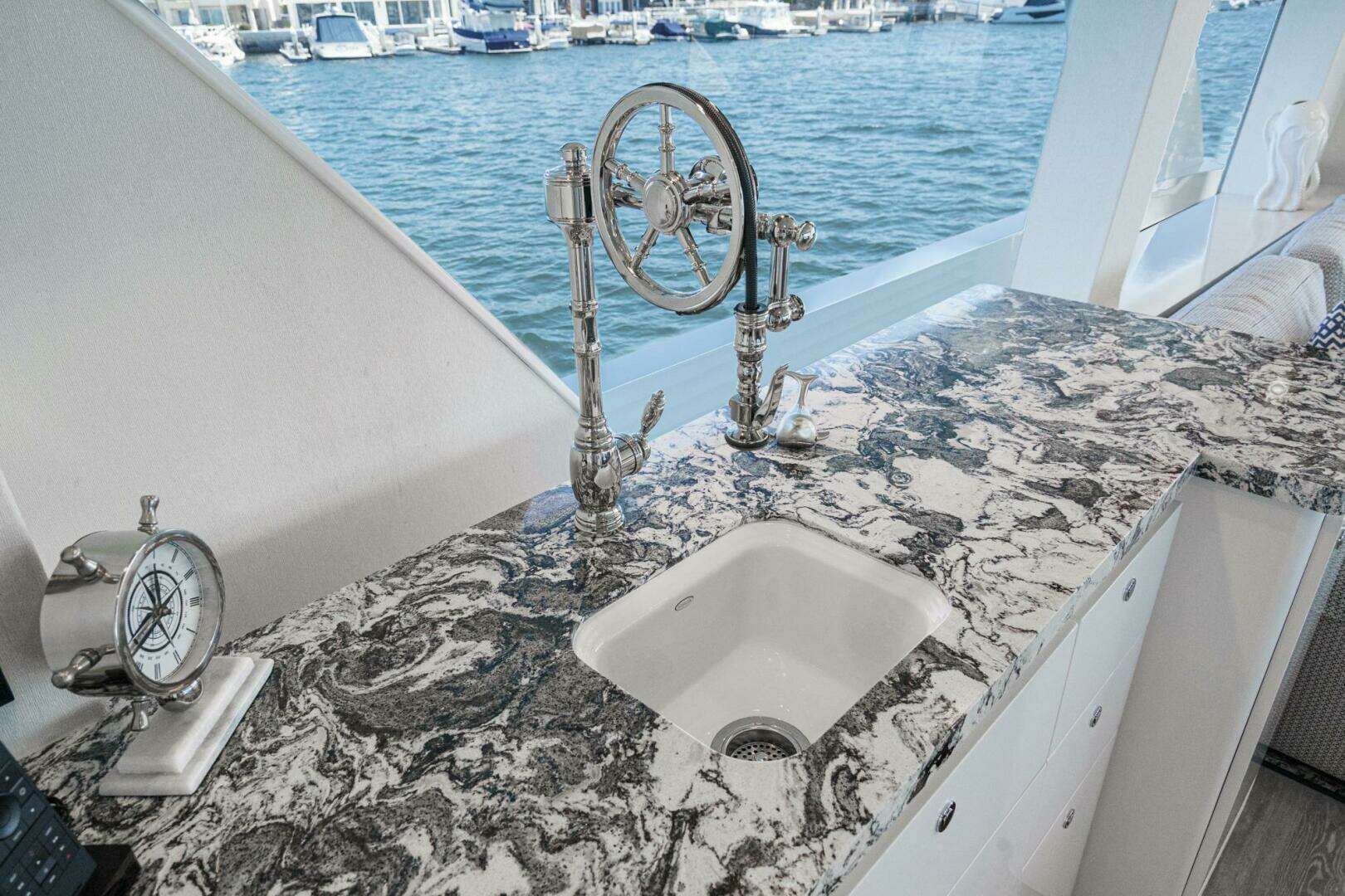 The enclosed pilothouse features two Stidd helm chairs, a full array of new electronics, raised banquet seating and table, port and starboard wing doors. Moving up to the bimini covered flybridge, you have twin helm chairs, an array of electronics, and large L-shape seating and table to port. To starboard you have twin built-in BBQ, sink and small refrigerator and additional storage. Aft on the boat deck is jacuzzi, tender, power rotating 2000-pound davit and aft helm docking station.