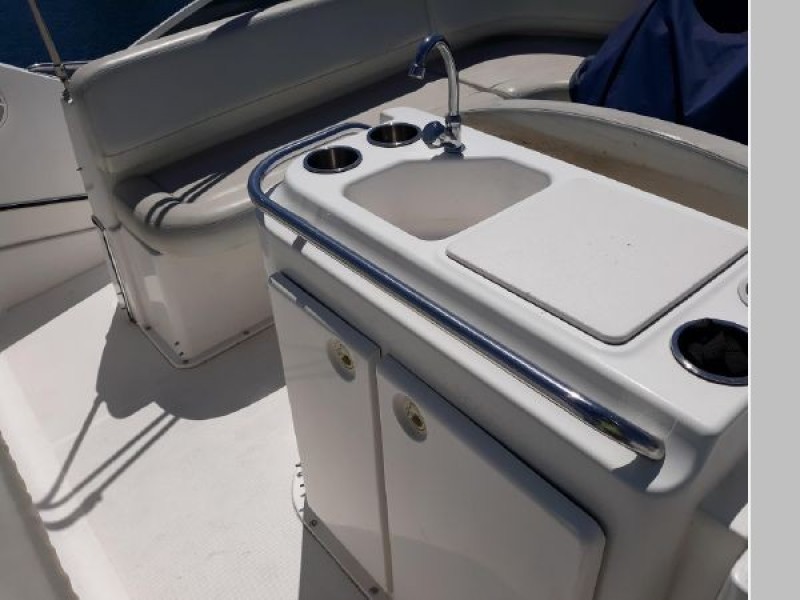 A very spacious family cruiser with all the amenities of larger boats. The "Sidewalk" deck Layout provides for a full-width interior with plenty of natural light. The most notable upgrade is the brand new Crusader engines with less than 10 hours of them. Engines, transmissions, and running gear were all replaced to accommodate the new motors. Seller is motivated- pursuing other interests. In the water, turn-key and ready to go. The vessel is located in New London, CT.