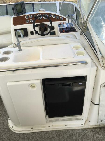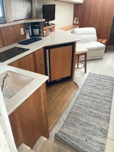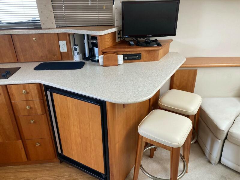 Flybridge wet bar w/sink, refrigerator and 110V outlet