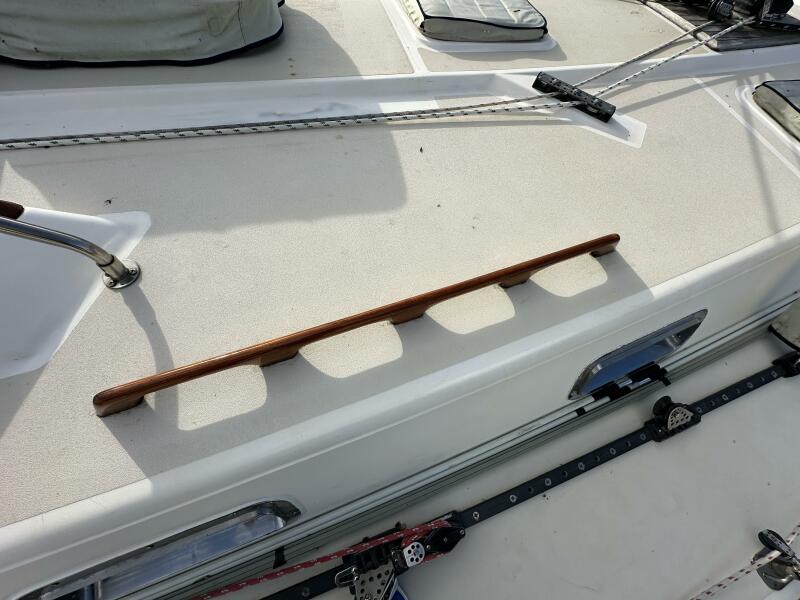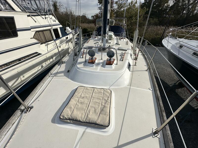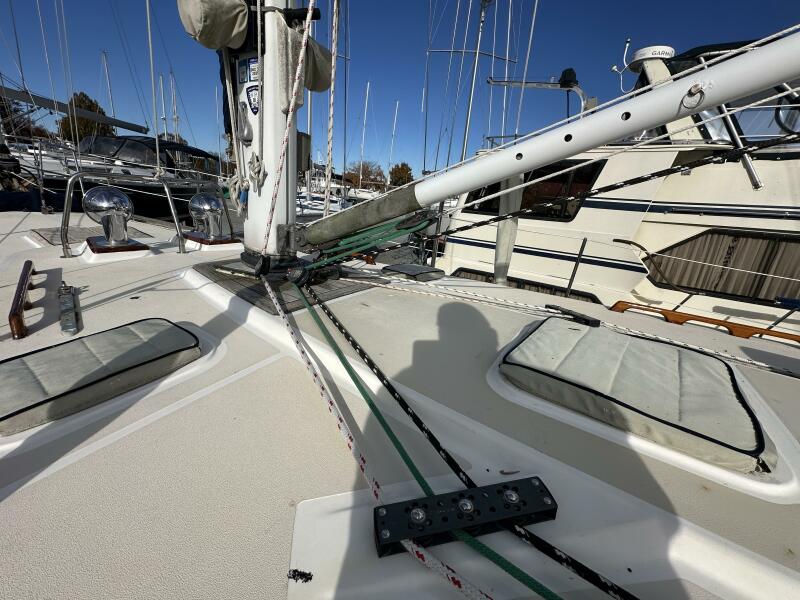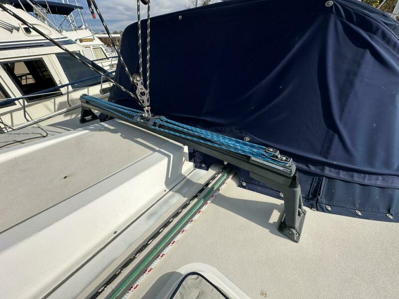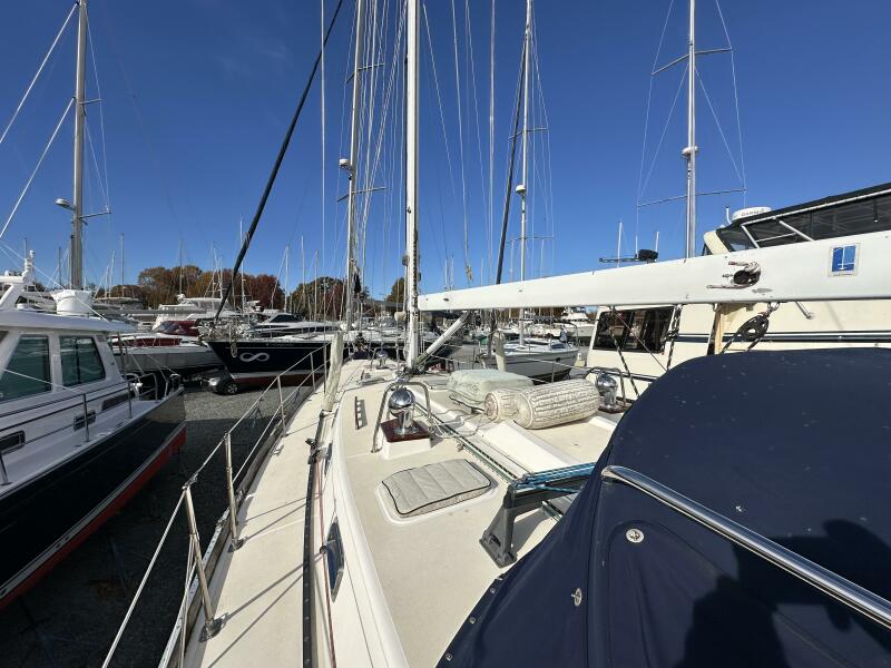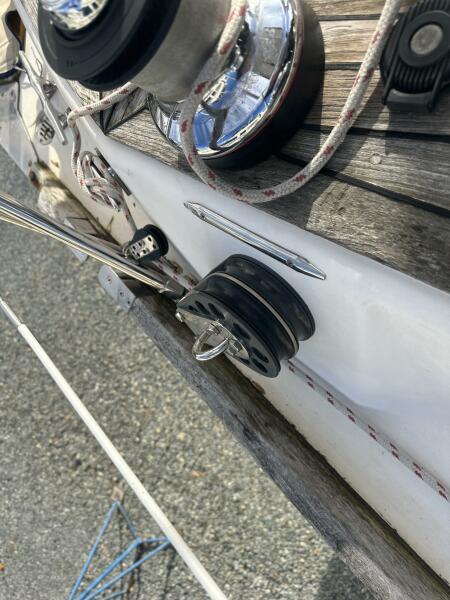 | Notable Upgrades: - Removable inner forestay to prevent jamming on jibe - Rigid vang holding sail and boom without topping lift - 60# Manson anchor (holds in 50 knot, clay and grass over shale) - Redundant ground tackle a) 200' 3/8 and b) 50' 3/8 / 200' 5/8 - Doubled foot block to run staysail and jib at the same time - Weather cloths to keep sea out of cockpit, with doors to run spinnaker sheets - Interchangeable sun shades and enclosures - Covers for winches and teak to reduce maintenance effort / cost |