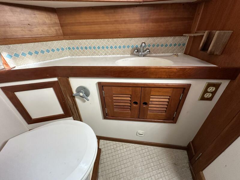 - 2 heads and 2 holding tanks serving forward and aft head - if one system goes down, you still have a backup