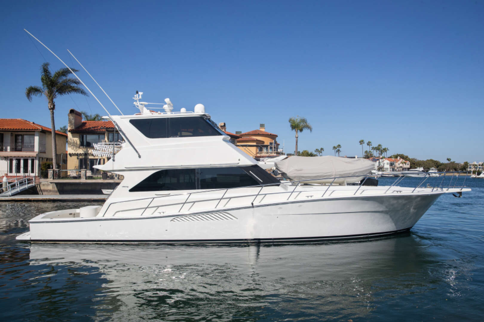 This 1999 Viking 58 Enclosed Bridge, TRIUMPH, has a modified-V hull and retains the same wide 18-foot beam as her predecessor, which accounts for her spacious interior and cockpit dimensions. The massive cockpit includes a transom door, in-deck fish box, direct engine room access, and a molded tackle center. Her meticulously arranged engine room ranks among the best. The enclosed flybridge has internal salon access and boasts frameless windows. Additional features include high-gloss teak interior joinery, a home-size galley, Corian counters, and a huge flybridge with rod storage and seating for a small crowd. *** LLC OWNED ***
