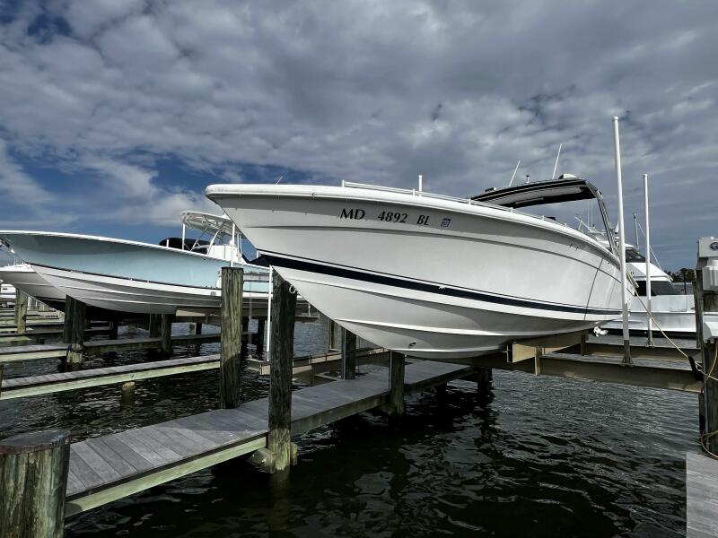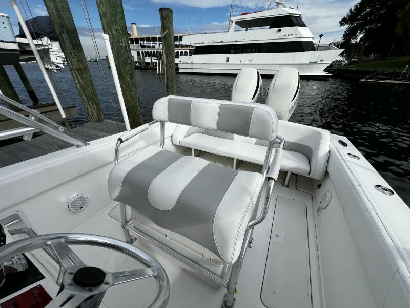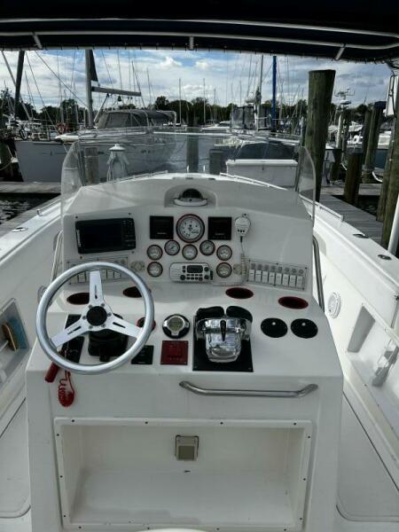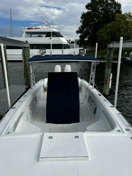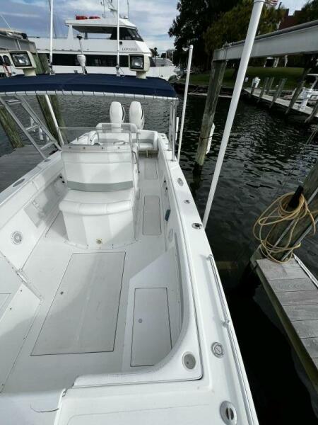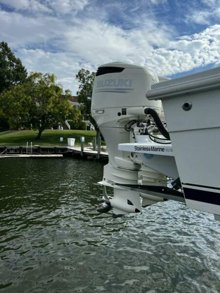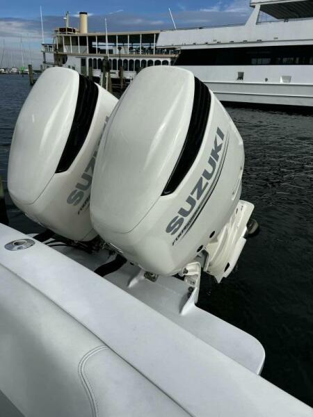 2000 Avanti 33' Center Console with large, cuddy cabin in great mechanical and physical condition. The vessel runs extremely well and cuts through 3-4' chop easily. It was repowered in 2017 with twin Suzuki 300 DF outboards and they only have 430 hours on them. Plenty of seating for cruising and ample space for fishing both forward and aft. Ample storage throughout the boat as well. Has been lift-kept so the hull is clean and in excellent condition. Console and aft bench cushions are in great shape but the coaming cushions could be replaced. Gauges currently do not work and could use an upgrade. Lowrance unit and Suzuki electronics are in full, working condition. Bluetooth audio system with great sound coming from JL Audio speakers. Cuddy cabin is very large and comfortable for long days on the water.