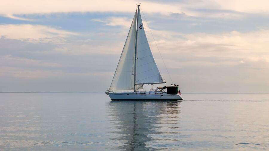 Eda features roller furling main and jib, a robust cruising sail inventory, modern propulsion, upgraded rigging, serious ground tackle, renewable energy, climate control, and communications systems designed for global cruising.