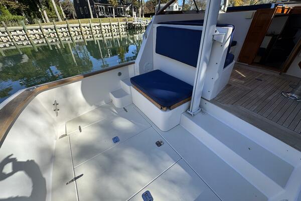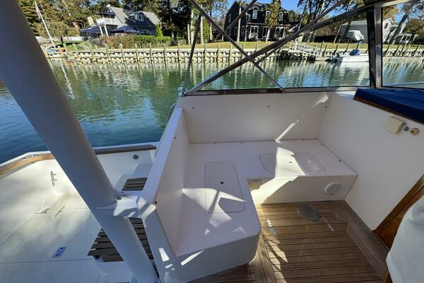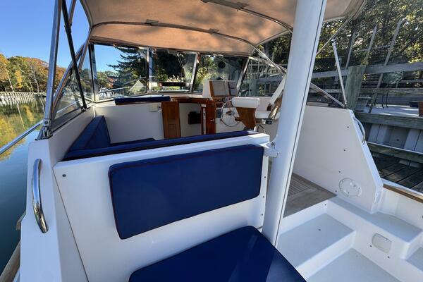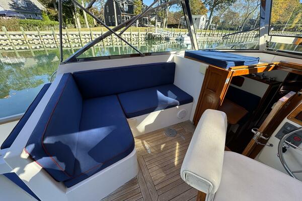 - Molded fiberglass settee & 2 molded helm seats at bridge