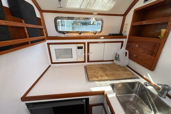 - Main bulkheads Formica covered marine plywood fiberglassed to hull & deck
