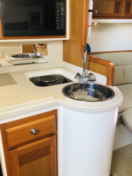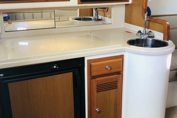 The Cabo 31 has an optional teak and holly cabin sole - the base for rich fabrics, recessed lighting, and decorator upholstery. Solid Corian counters and plush sleeping accommodations are standard. The galley has an electric stove, microwave oven, and refrigerator and freezer. The substantial head provides a good hot shower after swimming or a hard day on the water as well as a comfortable, well-lit vanity when heading out for the evening. The cabin of the Cabo 31 is both elegant for entertaining and offers abundant rod storage for the serious offshore angler.