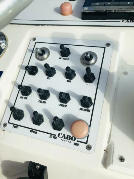 A 12-foot 5-inch beam carried well forward provides buoyancy to lift the bow up over the steepest wave while providing extraordinary internal living space. The first thing noticed upon approaching a Cabo 31 is the gleam - Cabo Yachts uses only quality gelcoats. A solid fiberglass bottom consisting of biaxial stitched fiberglass roving assures a rock solid and secure hull. From the waterline to the rails, the Cabo incorporates Baltek end-grain balsa coring for strength without performance- hindering weight. And to augment the hull's external integrity, Cabo Yachts employs a structural module that eliminates torsional flex, and makes the entire hull and interior one solid piece that will build confidence, even in severe conditions.