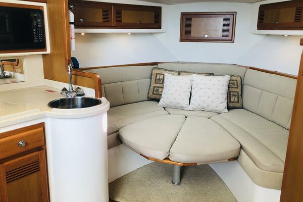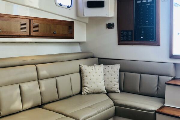 The most significant upgrade is the 2017 repower with a pair of reliable and fuel-efficient Cummins QSB 5.9 common rail engines pushing out 440hp each. This modern engine package not only provides improved performance but also peace of mind for years of trouble-free operation. Paired with this, the boat's helm has been completely modernized with a full suite of new Garmin electronics, ensuring you have the latest navigation, sonar, and radar technology at your fingertips. The 12volt electrical system was also recently upgraded including all new remote battery switches and breakers, cabling, batteries and charging system.