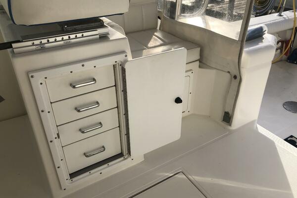 In addition to its mechanical and electronic upgrades, 'Legacy' features all the hallmarks that made the 31' Express a classic: a hydraulically lifting helm deck for easy engine access, a spacious cockpit with in-deck fish boxes, a transom livewell, and a well-appointed cabin with sleeping accommodations for four. This vessel represents a rare opportunity to own a well-regarded hull with a new-era powertrain and electronics. It's ready to chase your next trophy catch or provide a comfortable weekend on the water.