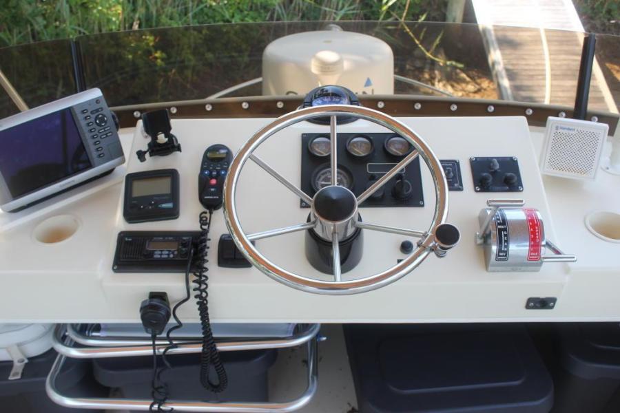 The Camano Troll is a gorgeous pocket trawler with a dependable Volvo diesel, bow thruster, optional diesel generator, optional hardwood floors, optional helm chair and AC/Heat! She is a great boat capable of local or longer distance passages. Perfect for the Loop or to cruise to the islands. She will make those passages safely and efficiently at either displacement or planning speeds, at seven or fifteen knots respectively. She is a one stateroom, one head trawler with a large salon and very practical galley down one step. She entertains eight, seats six for meals and sleeps four comfortably (settee converts). With two helm stations, a large flybridge and great 360-degree visibility in the salon, she makes a wonderful "Pocket Trawler”. The substantial keel provides full protection for the four bladed prop and docking is a breeze with the large rudder and bow thruster. Camano owners rave about the economical operation and low maintenance of their boats. At 7 knots she consumes about 1.5 GPH and at 14 knots about 6 GPH!. Her 200-HP Volvo diesel has 1850 hours and her genset has 260 hours. She’s a very high-quality West Coast built trawler, simple, strong and economical. She comes with a slip at Brick Cove Marina for the 2022 season!!! Check out the Full Specs and call for an appointment for a showing.