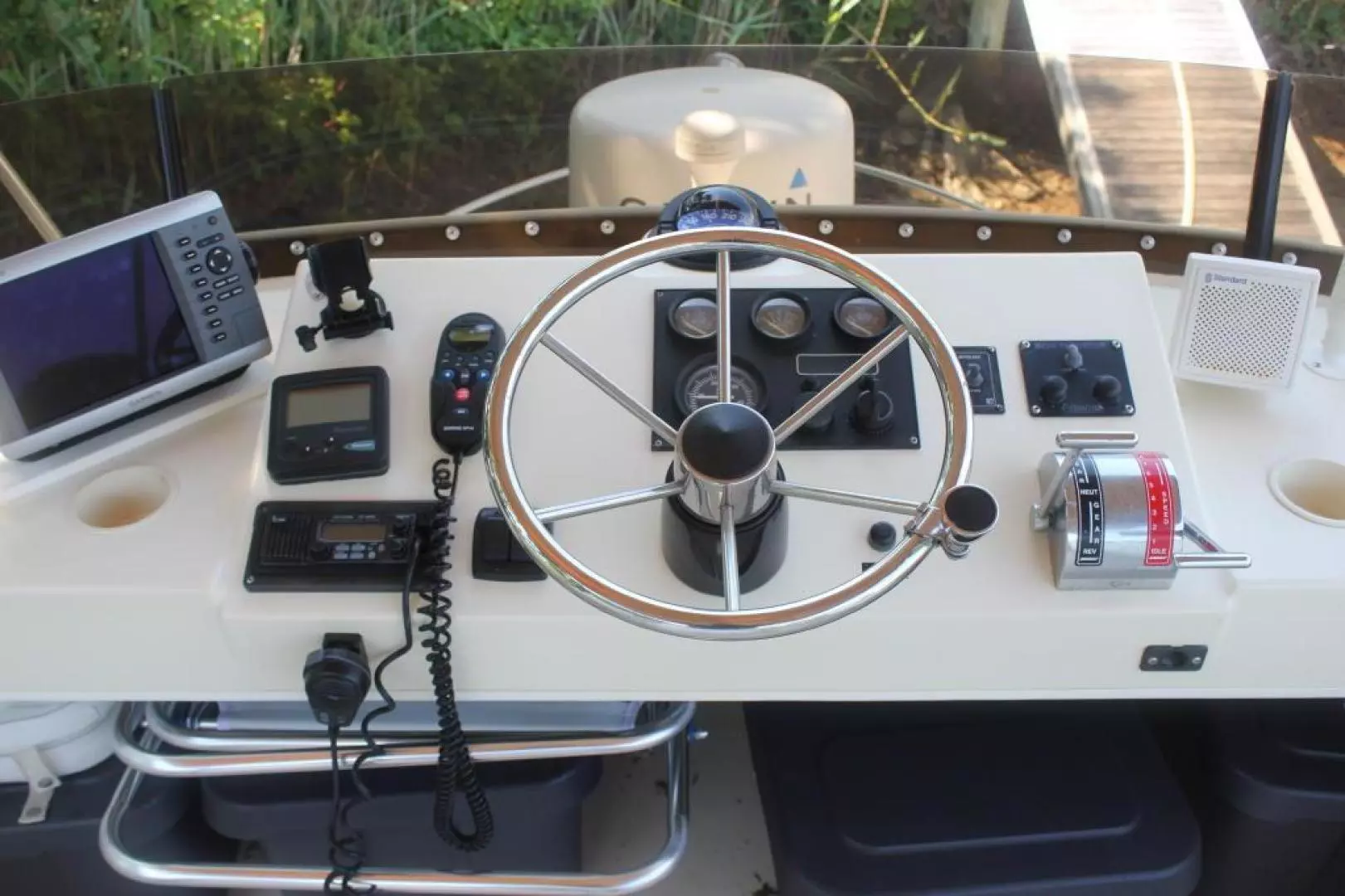 White gelcoat deck surfaces with molded in non-skid.
