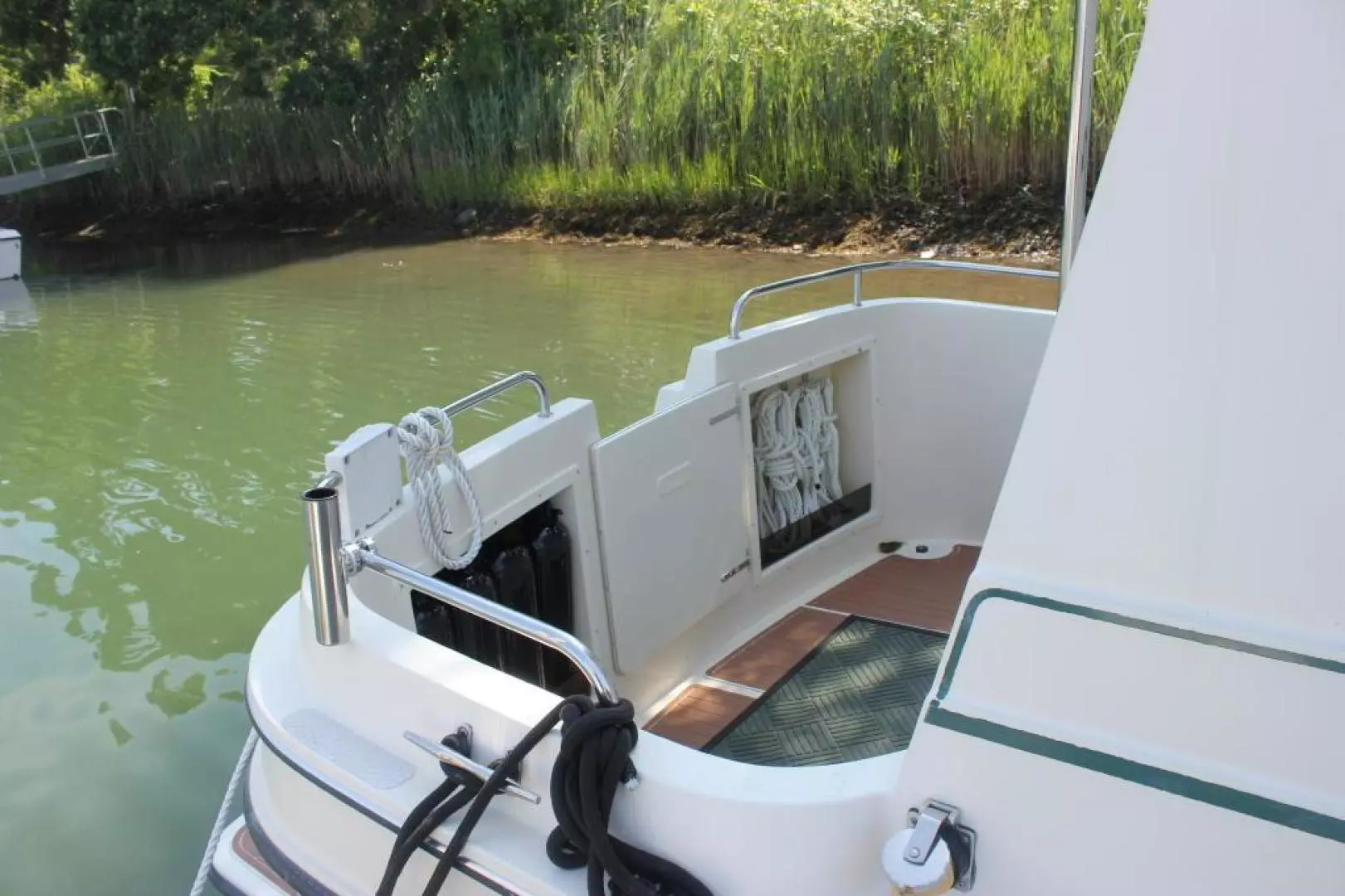 Open cockpit with transom storage