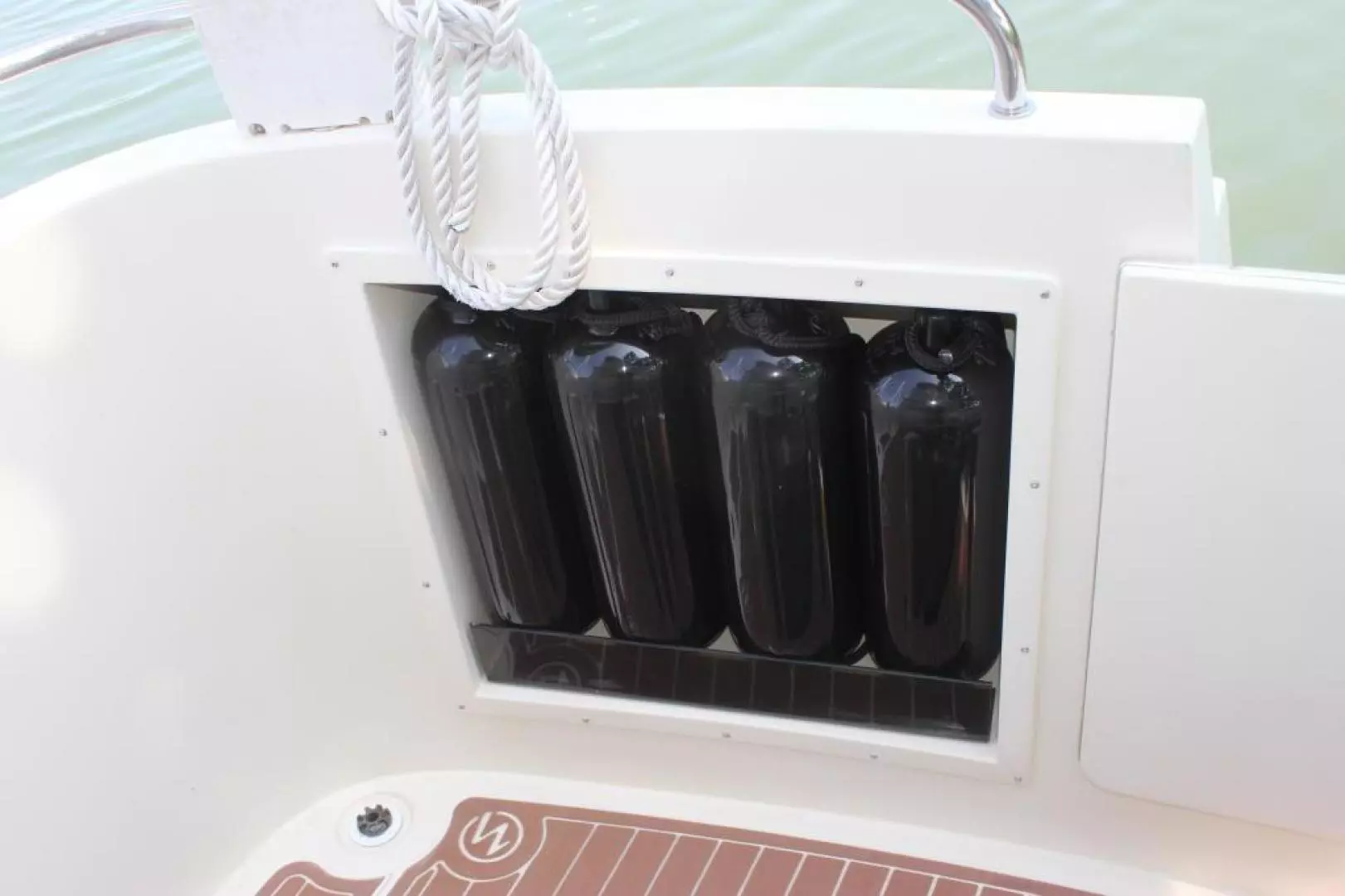 Solid FRP construction hatches for access to the LPG locker and lazerette.