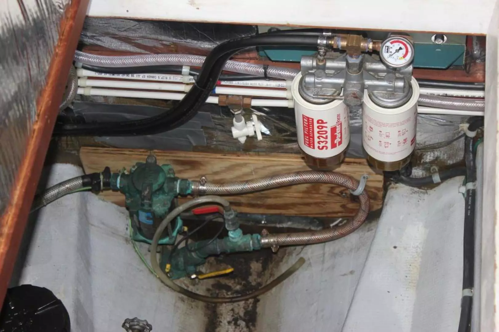 Thru-hull strainer in the engine compartment