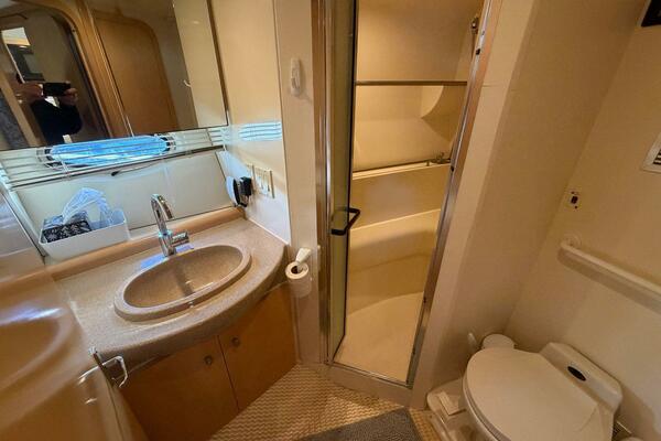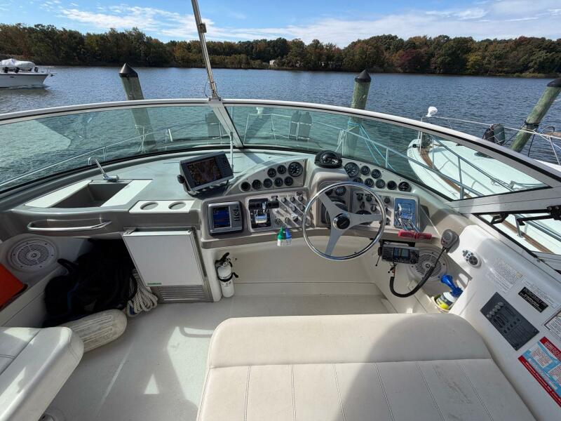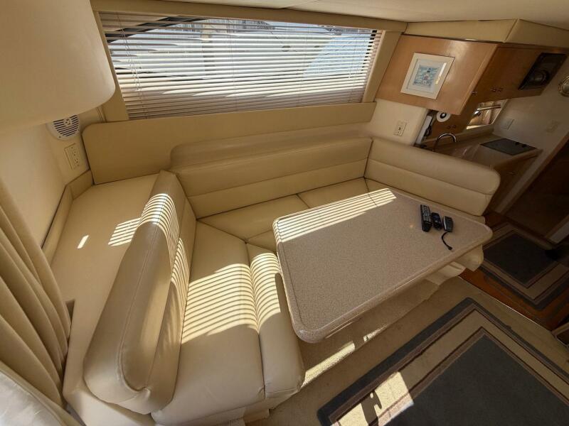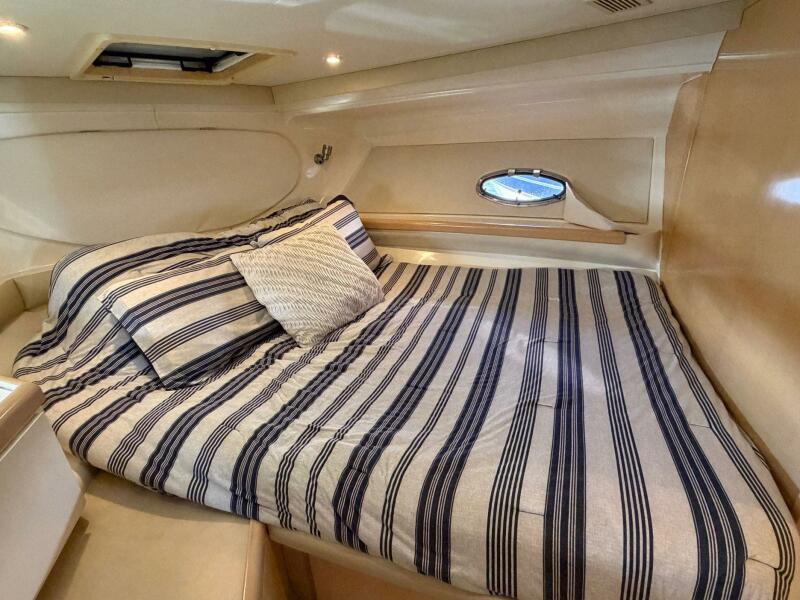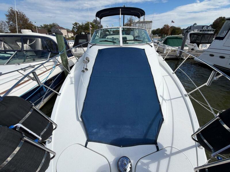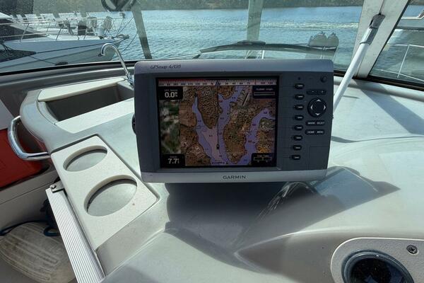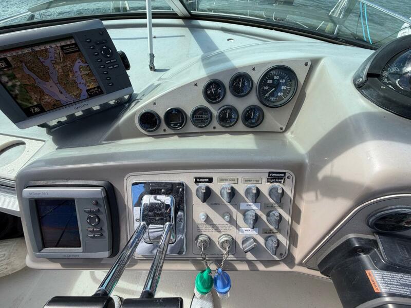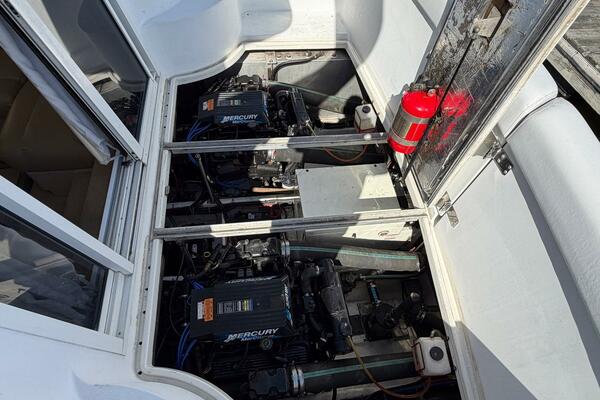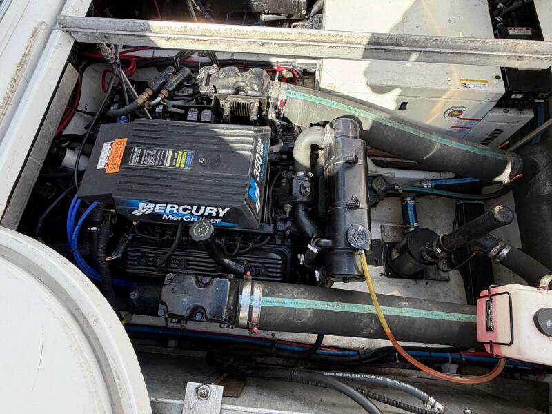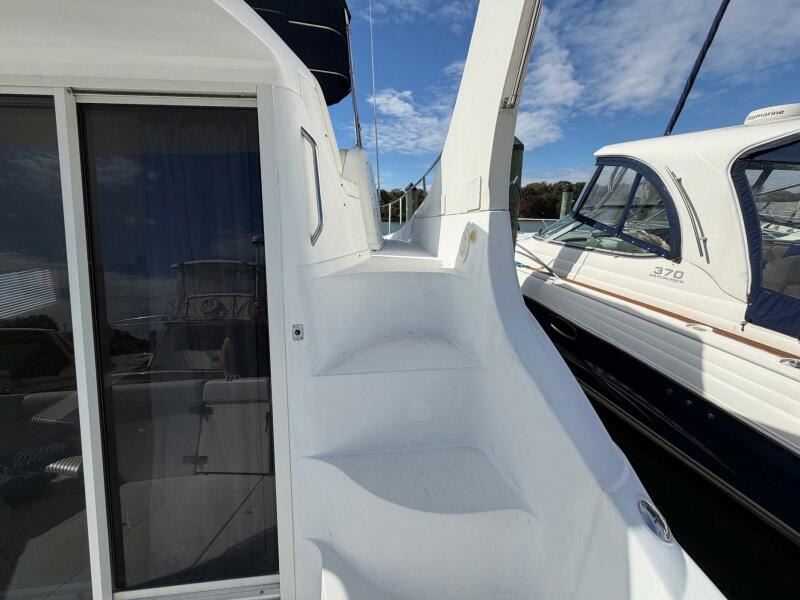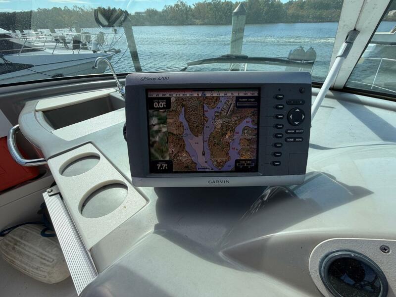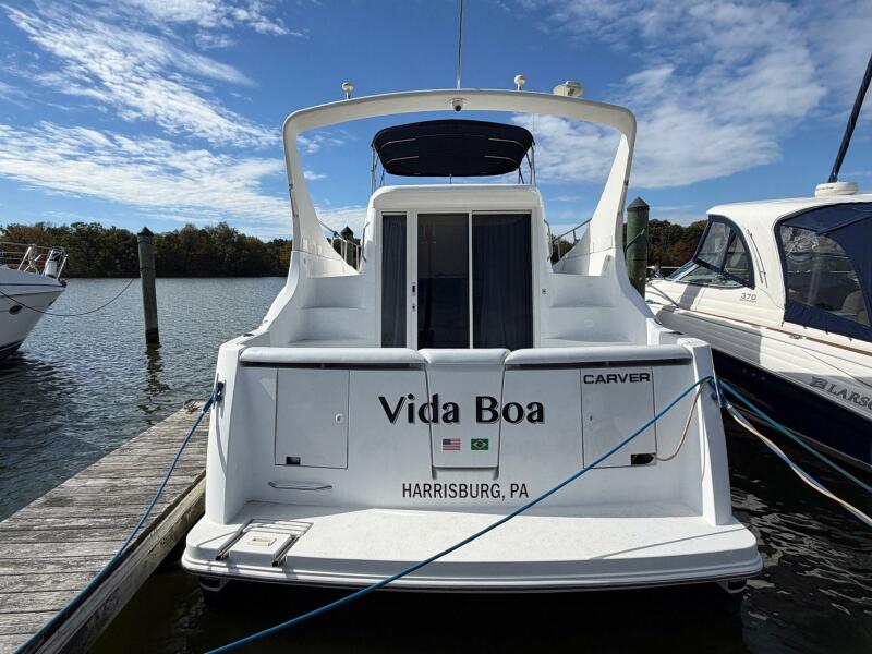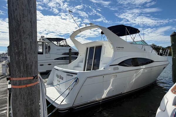 The Carver 350 Mariner has a full-bodied profile that provides an expansive interior. The 350 features extra wide gunnels for safe and convenient access to the bow, with a unique style of providing bridge access from both topside and from inside the cabin. The enclosed bridge has seating for plenty of guests while underway, and includes a wet bar, and volumes of storage. Step forward and find the best seat in the house - a doublewide foredeck lounge for great views while cruising or just enjoying a sunset at anchor. Below you will find a large cockpit for on the water enjoyment with walk a through transom door. From the cockpit, a sliding glass door gives access to the single-level cabin featuring maple cabinetry and trim work that creates a very spacious, open and bright atmosphere. Aft, the salon features a convertible sofa to Starboard, and a wraparound dinette to Port. Moving forward to Port is the well appointed galley, and to Starboard is access to the head with a separate shower stall . Forward, the master stateroom has a double berth and also features access to the head. "Vida Boa" is powered by twin inboard Mercruiser Blue Water 350 Magnum multi port fuel injected engines, 300 hp each. Both engines were completely rebuilt by JB auto machine. Port side engine has approximately 335 hours, and the starboard engine has approximately 135 hours. She is equipped with a 7.5 kw Kohler marine generator, an ice maker(yes it works), AC/Heat, windlass, two chart plotters, and more. All Marine electronics are connected via Nmea 2000 marine network which also includes rutter angle and trim tab position. The smaller chart plotter also functions as sonar. Everything on this boat is in very good working condition. Interior upholstery has been replaced with high grade marine vinyl. The boat is currently sitting with a full summer winter helm cover, and a full enclosure included.