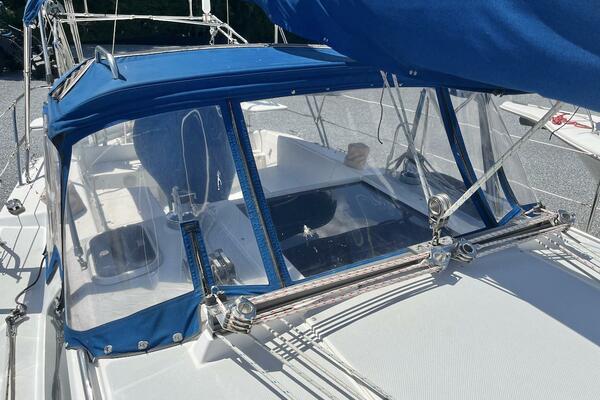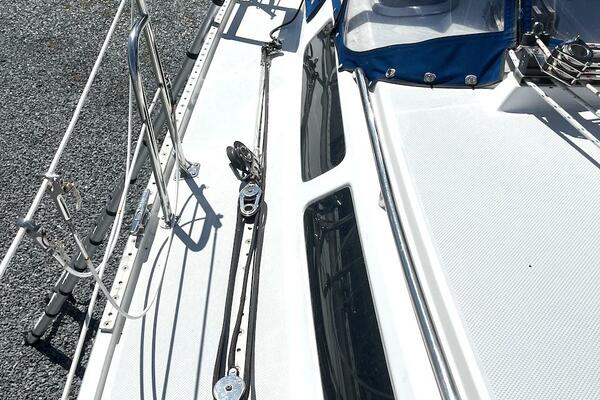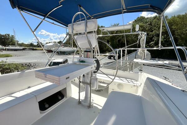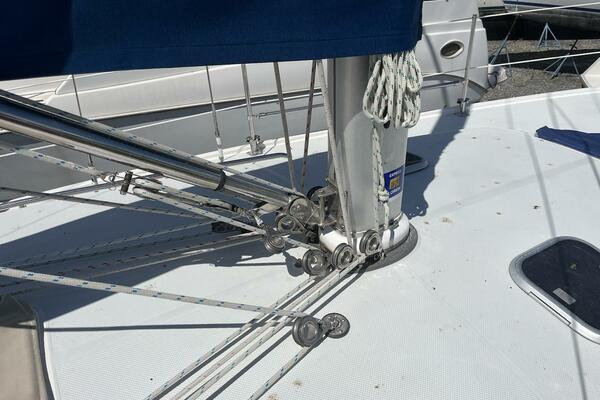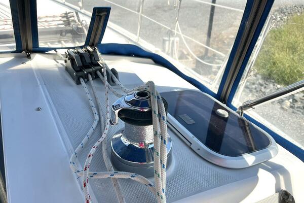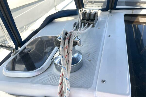 All lines are led aft to the cockpit for maximum safety and ease of handling. This includes the furling genoa and jiffy reefing mainsail, making single- or short-handed sailing a breeze. The cockpit also features self-tailing Lewmar winches, rope clutches, and E-Z Glide Adjustable Genoa Car System, ensuring efficient sail control and clean working spaces.