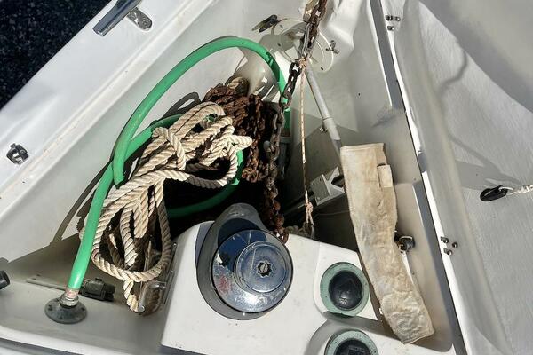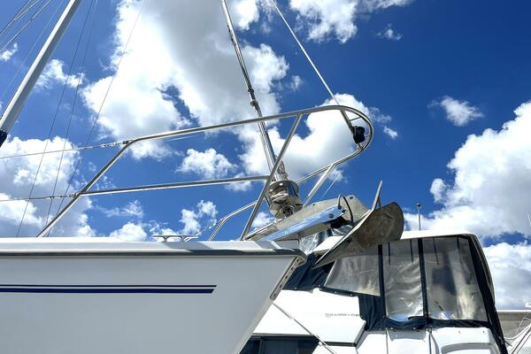 At the bow the sturdy Delta Anchor, back up aluminum danforth anchor, and the Maxwell windlass makes anchoring secure.