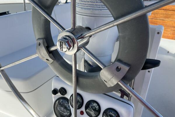 At the heart of the action is the spacious, self-bailing cockpit—one of the largest in its class. With deep seating, a custom cockpit table, drink holders and perch seats it comfortably accommodates a full crew or guests for sunset cocktails. The Edson pedestal steering system with a stainless steel destroyer wheel, with wheel help auto-pilot provides confident helm control, while cockpit cushions and a full bimini, dodger, and connector provide all-day comfort and shade.