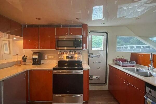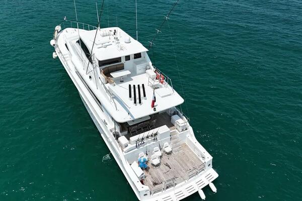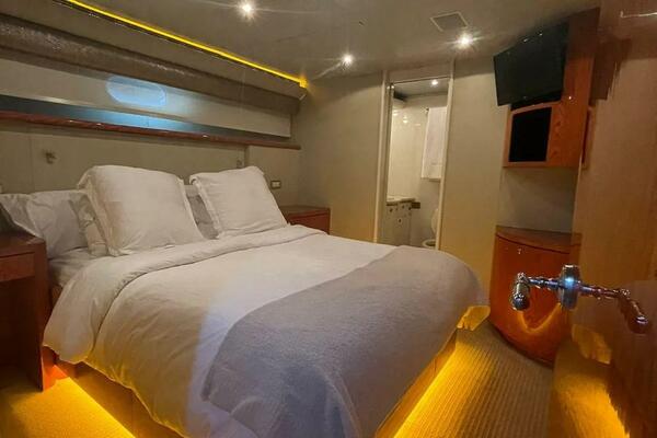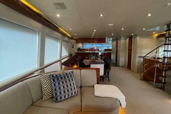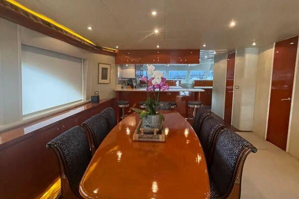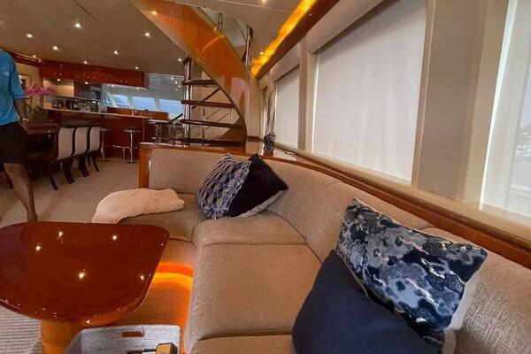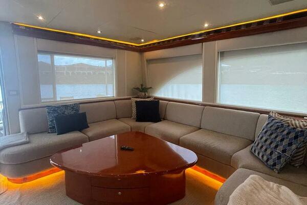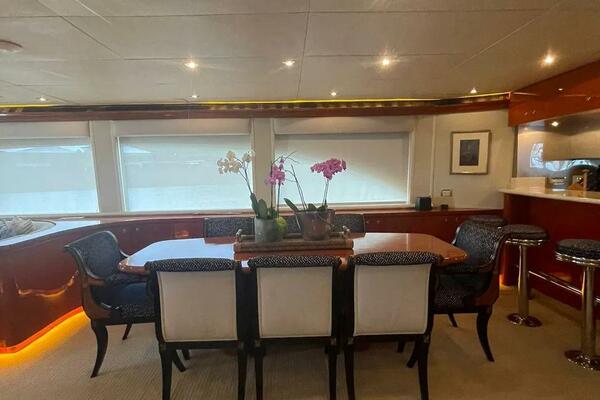 The 2000 Cheoy Lee 95 combines volume, comfort, and performance in a proven design. She accommodates up to 14 guests in 6 spacious ensuite staterooms, offering exceptional versatility for family cruising. Vast exterior decks provide ample lounging, dining, and toy storage areas, while her reconfigured flybridge with full bar delivers breathtaking 360° views.