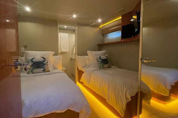 Powered by twin MTU 1350 hp engines (7,780 hrs), she cruises with confidence on a robust GRP hull renowned for its strength and reliability. Professionally maintained by a dedicated crew and consistently upgraded throughout her life, this yacht represents a rare opportunity to own a well-cared-for vessel that is both stylish and seaworthy.
