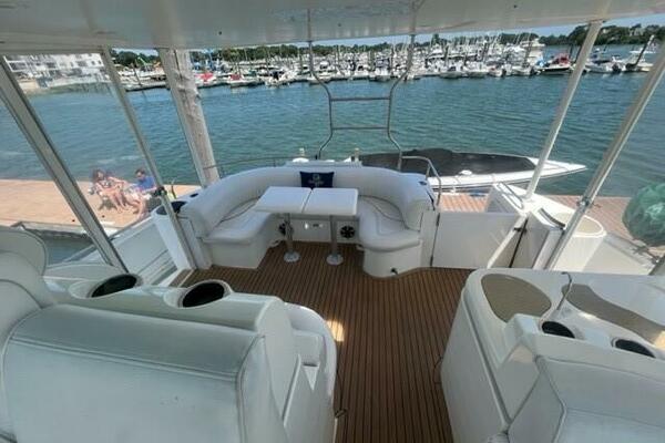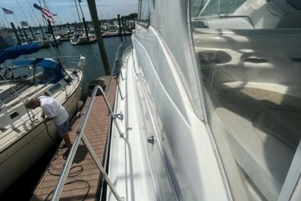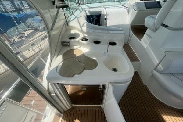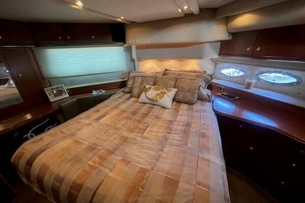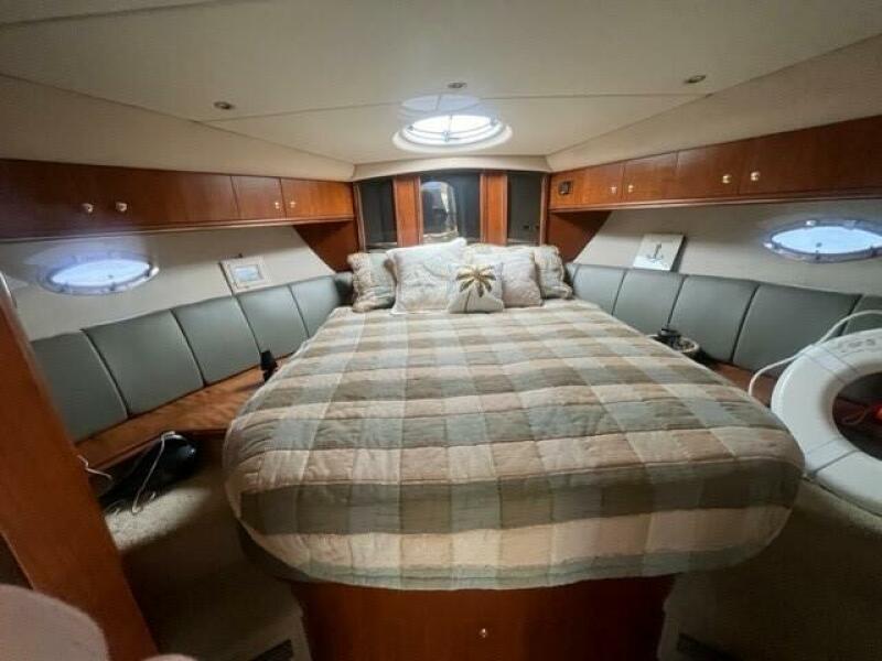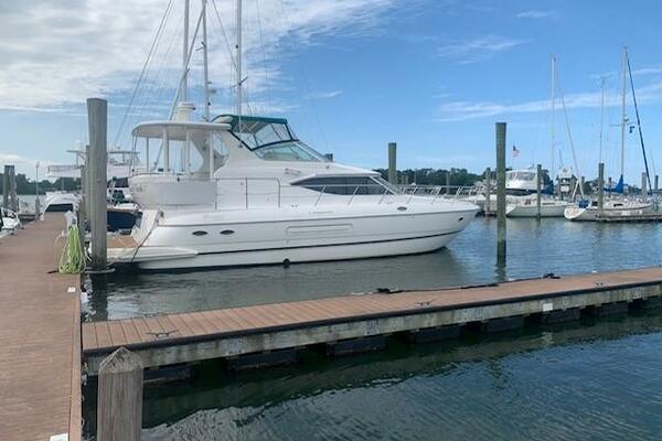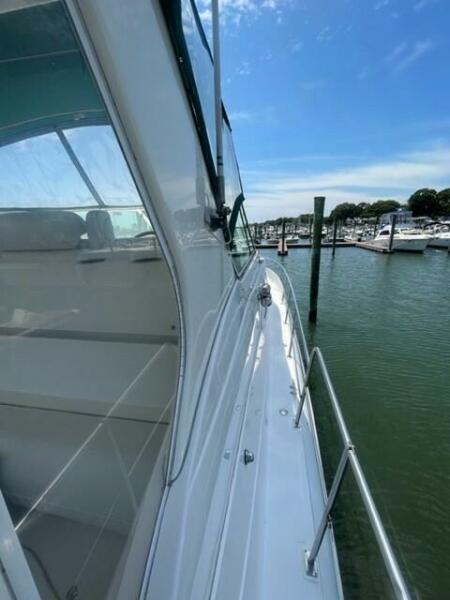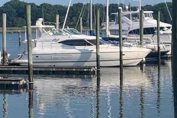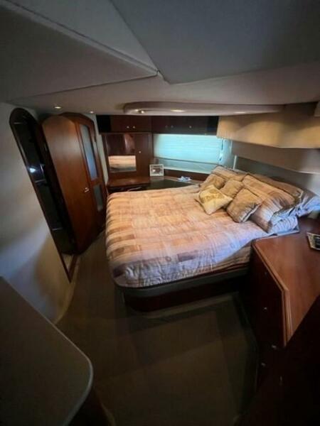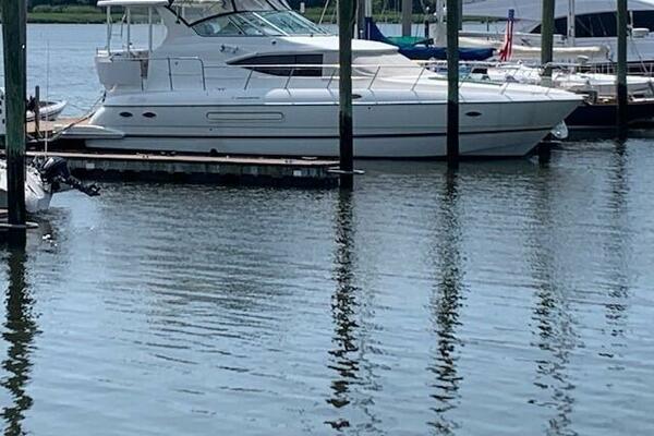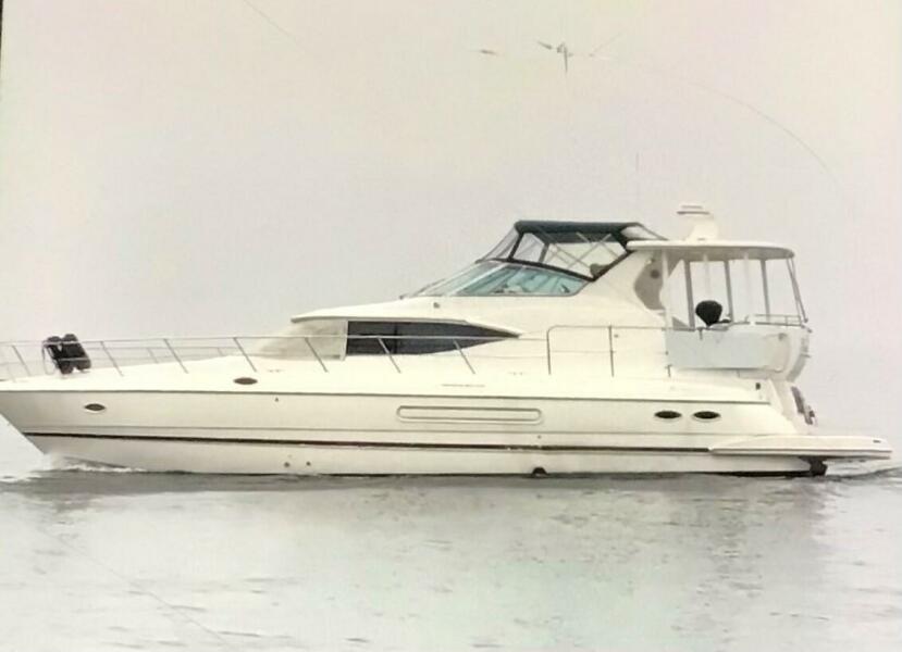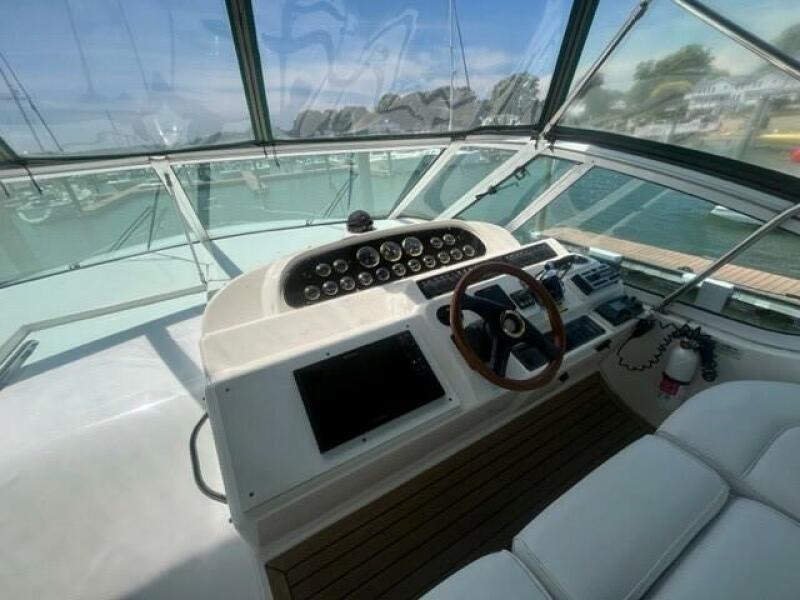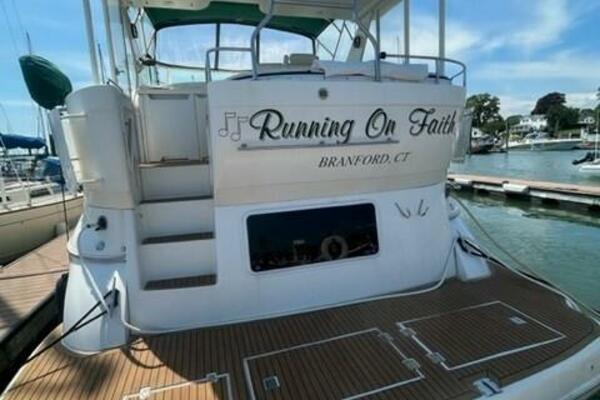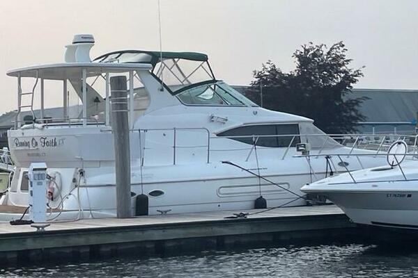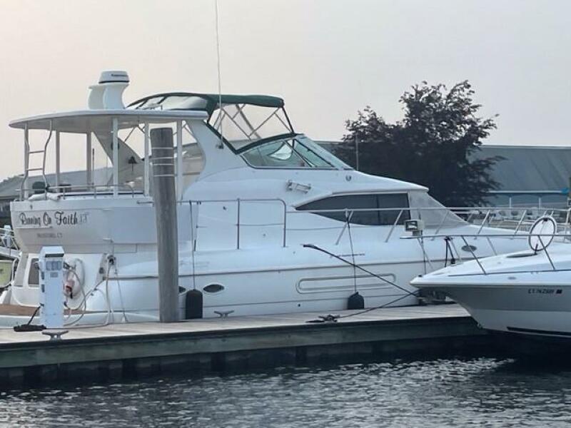Running on Faith II a Cruisers model 4450 Express motor yacht with an open deck layout in a aft cabin yacht which is an evolutionary step in yacht design. Built on a beamy modified V hull, the 4450's condo style interior accomodations and express-like cockpit layout with 3 staterooms has a spacious salon and galley. The tiered helm has excellent vsiability and the side decks are wide enough for secure access to the fore deck. Powered by a pair of Caterpillar 420 HP diesels cruises in the high teens. The owner has metaculously maintained her and now lookking to move on. Located on the Branford River she is ready for her next owner.